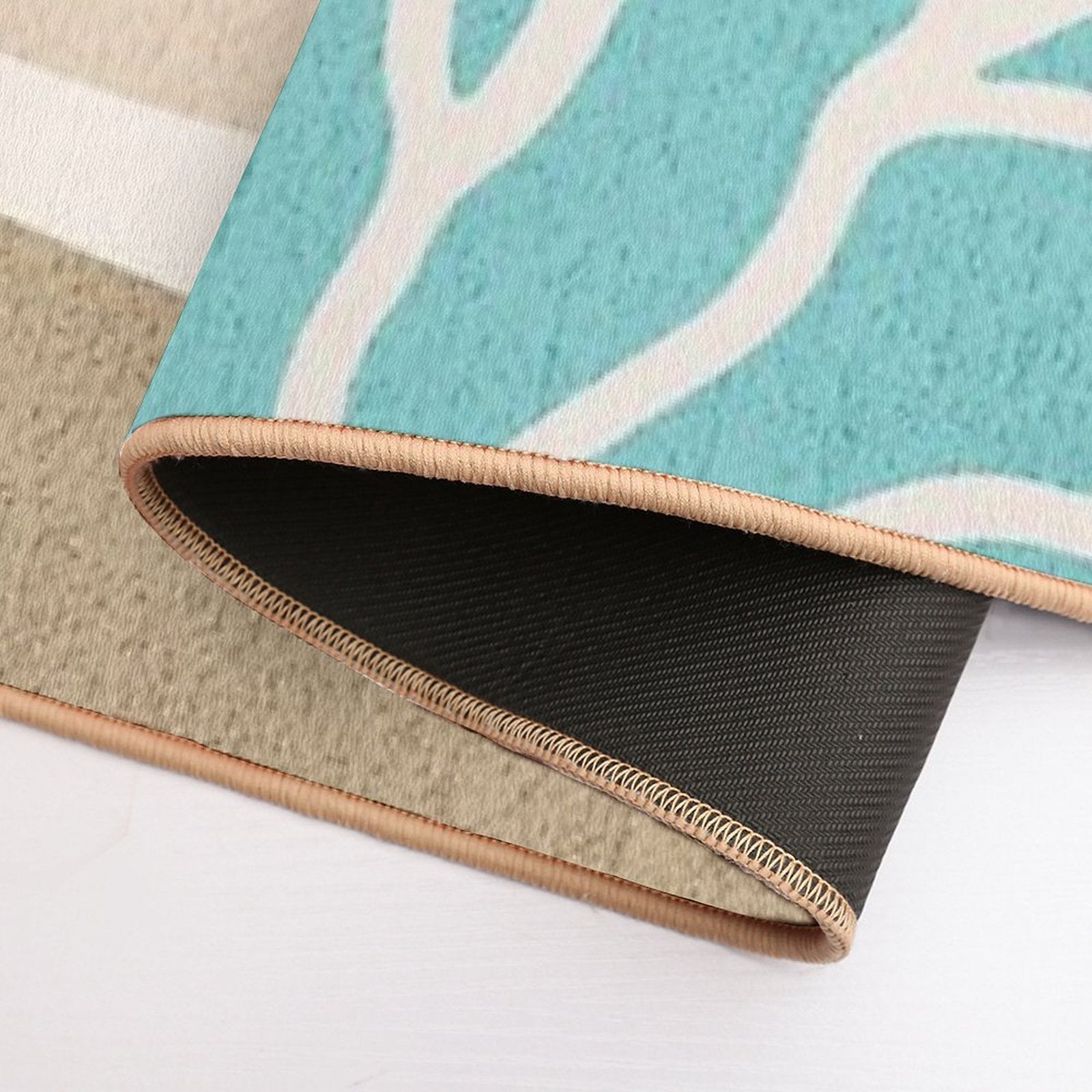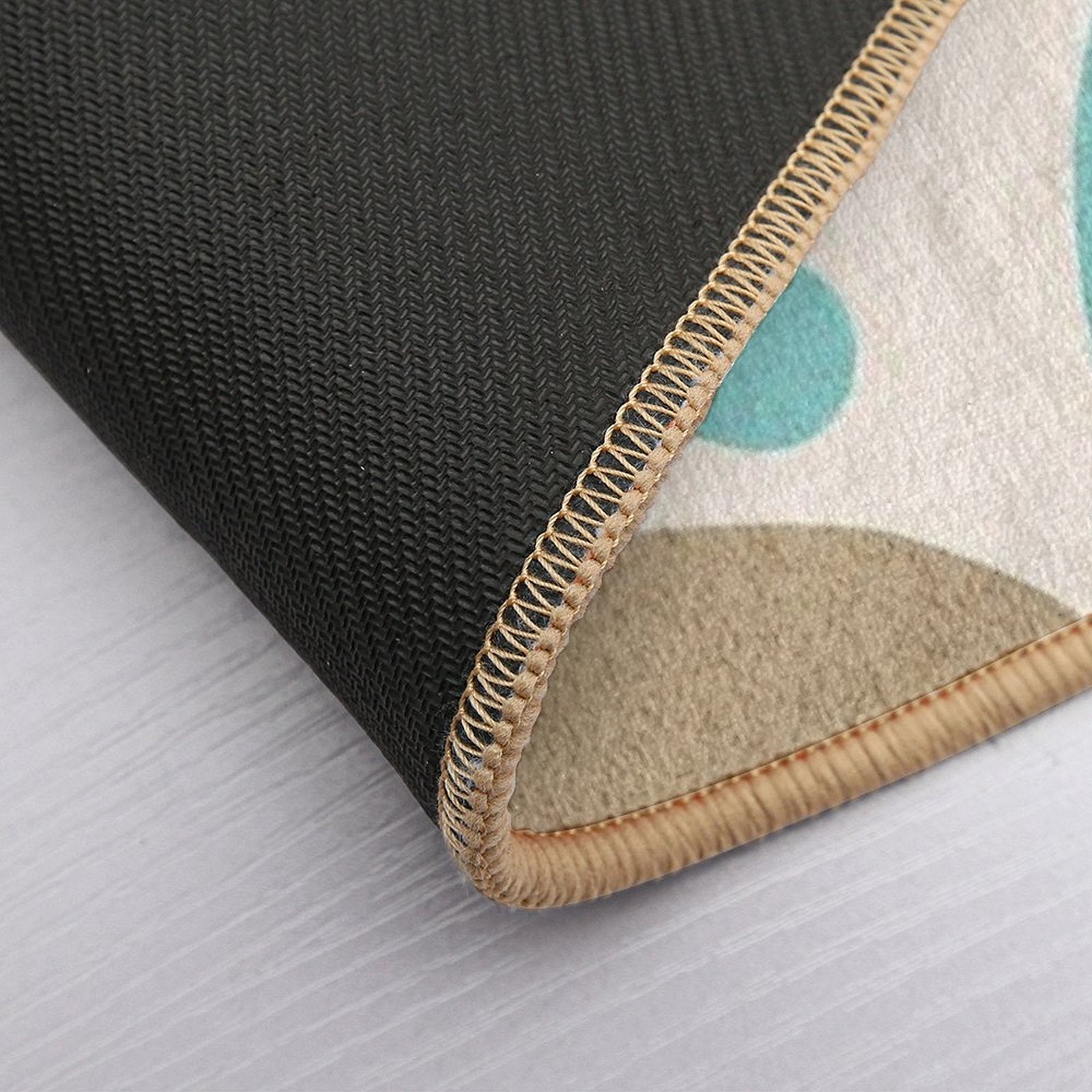 - Non-slip rubber backing grips floors securely, ideal for Abstract Irregular Shapes with Earth Tones Mat placements on tiles, wood, or marble.