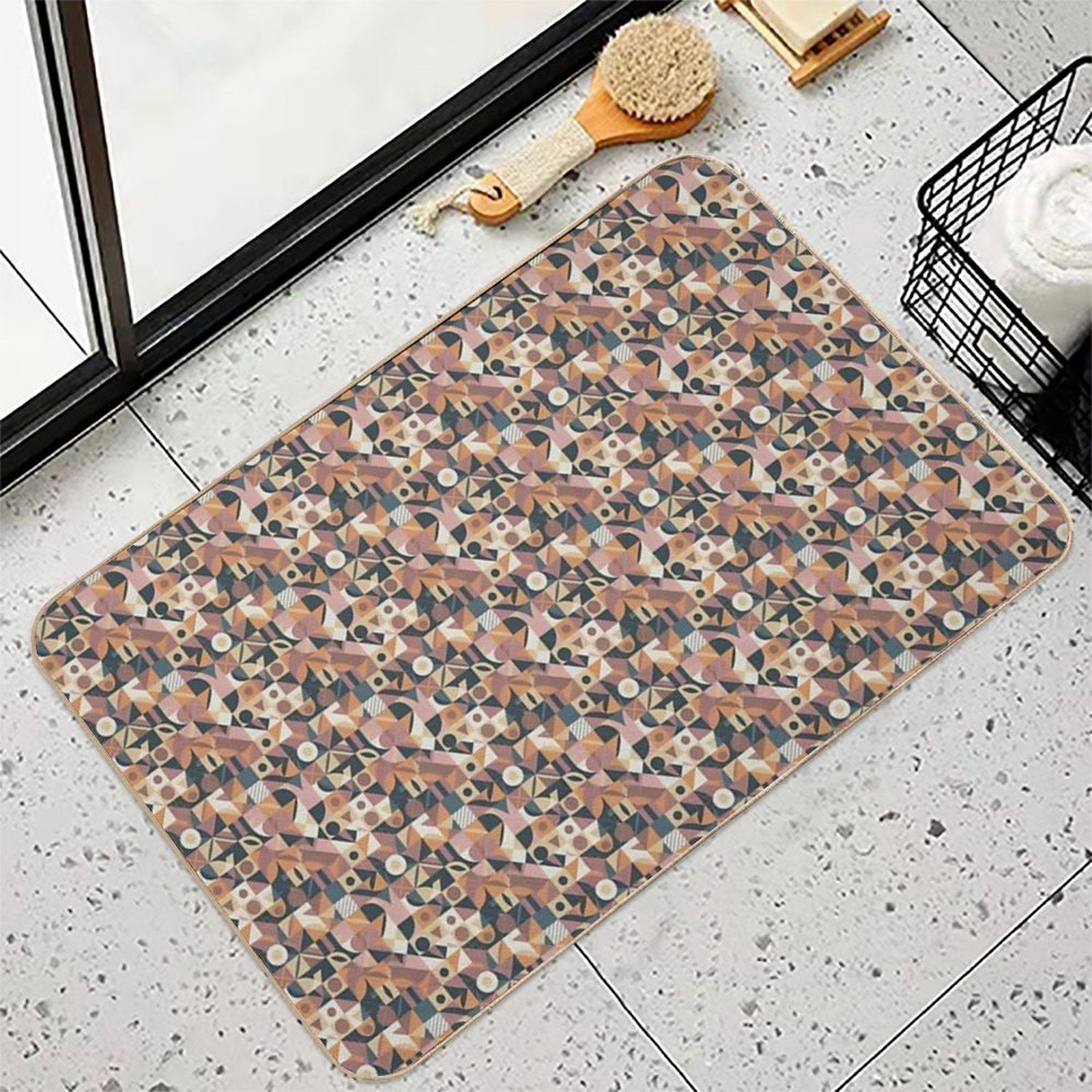 - Use as a vanity rug, guest suite accent, or mudroom defender – the Bauhaus Style Geometric Abstract Pattern Mat adapts to any space.