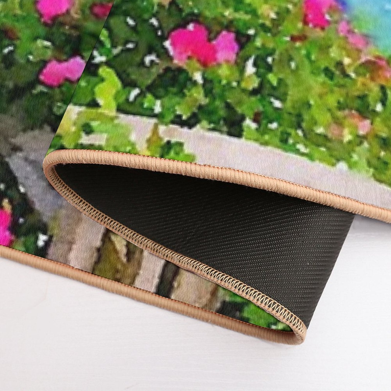- Non-slip rubber backing grips floors securely, ideal for Beach Rose Along Ocean Watercolor Mat placements on tiles, wood, or marble.
