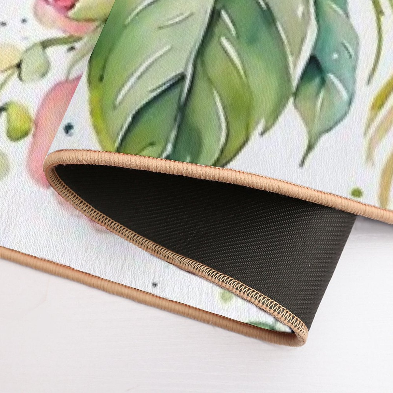 - Non-slip rubber backing grips floors securely, ideal for Beautiful Flower And Plant in Loose Watercolor Painting - Monstera Leaves- Blue Purple Peach Hydrangea, Hortensia, Peony And Ros Mat placements on tiles, wood, or marble.