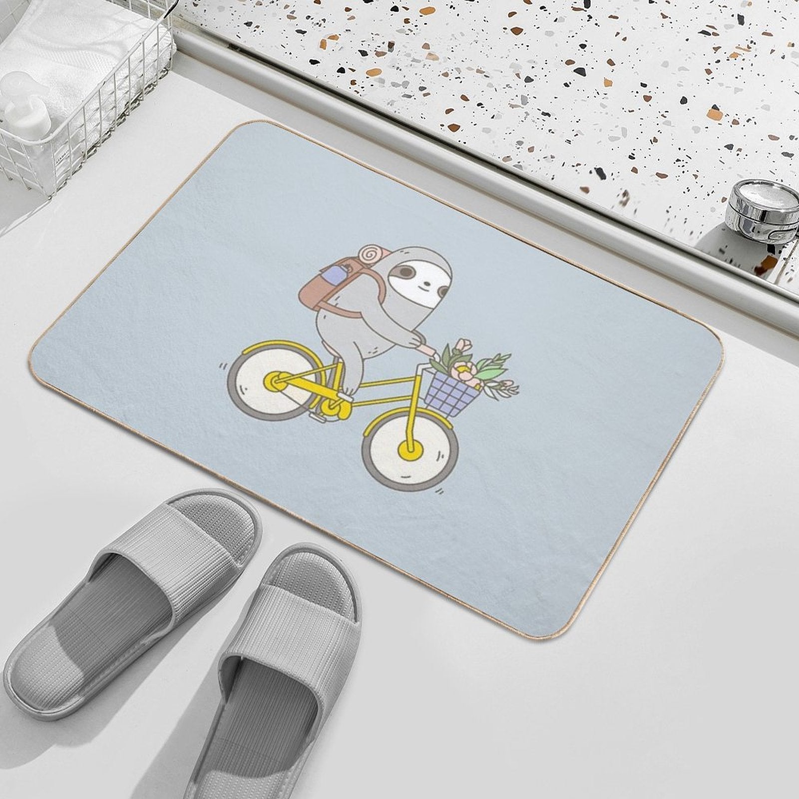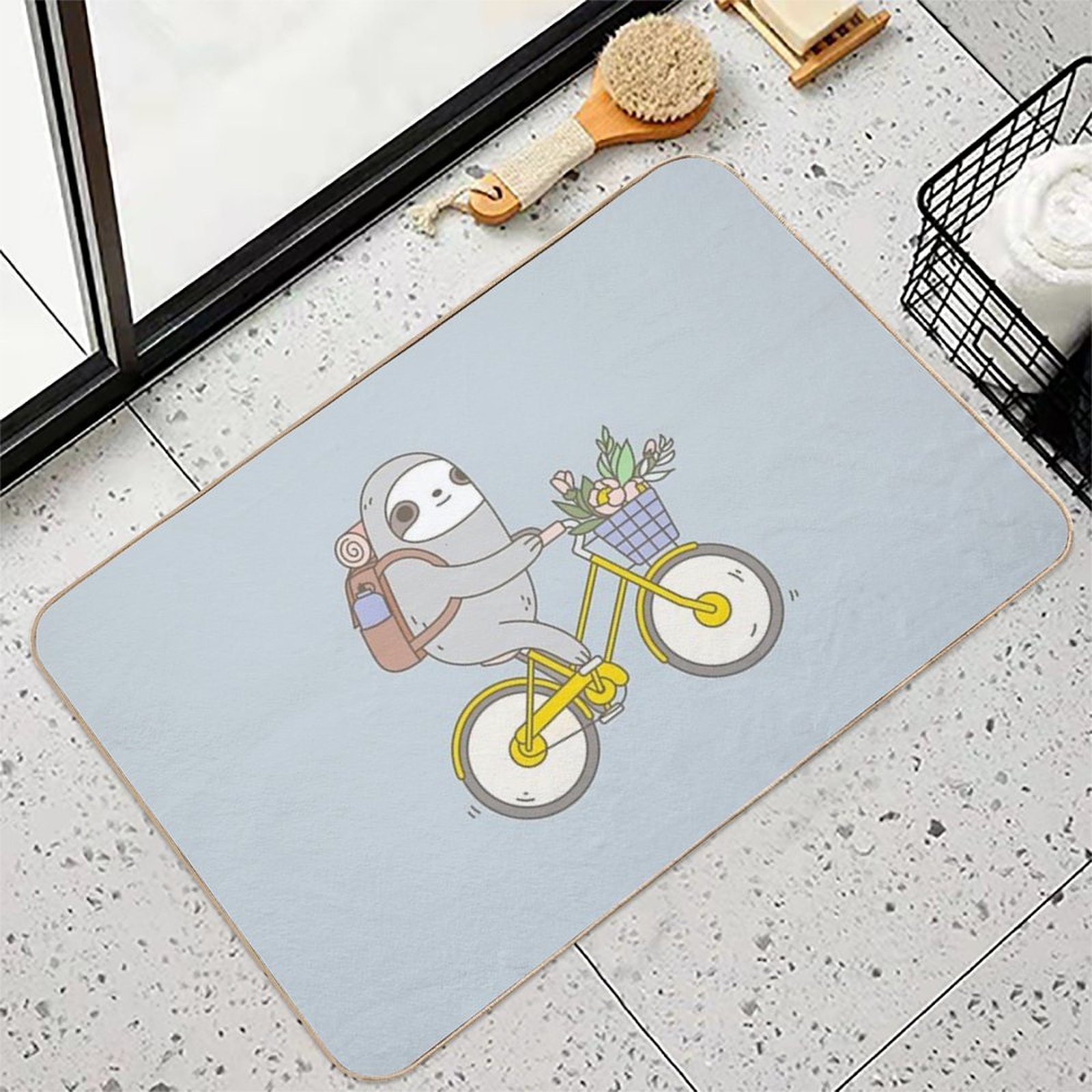 - Use as a vanity rug, guest suite accent, or mudroom defender – the Biking Sloth Mat adapts to any space.