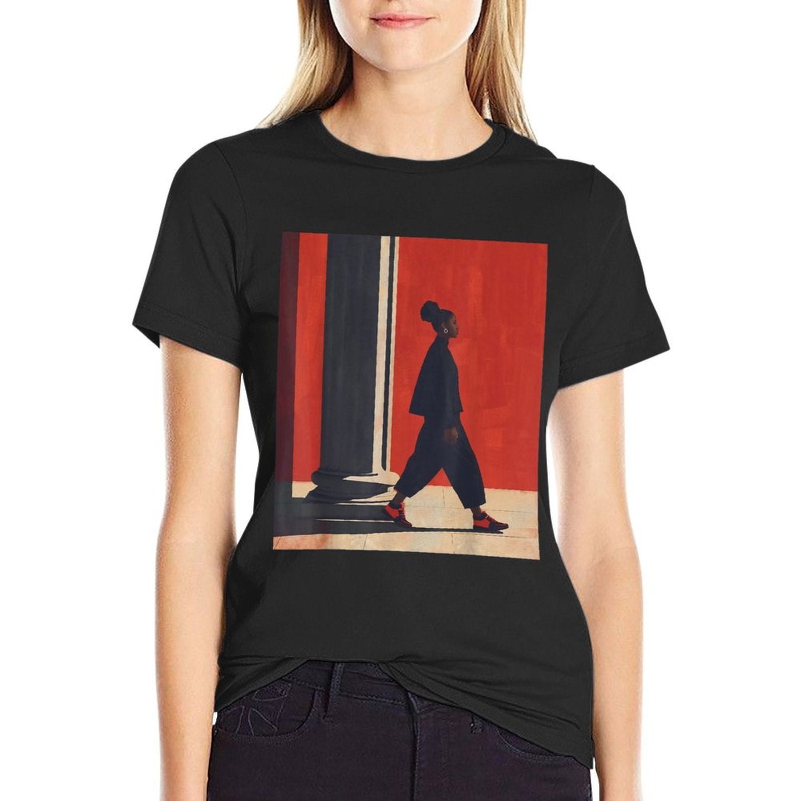 Black Girl Walking Afro Style Women African American Pride Affordable Price T-Shirt
