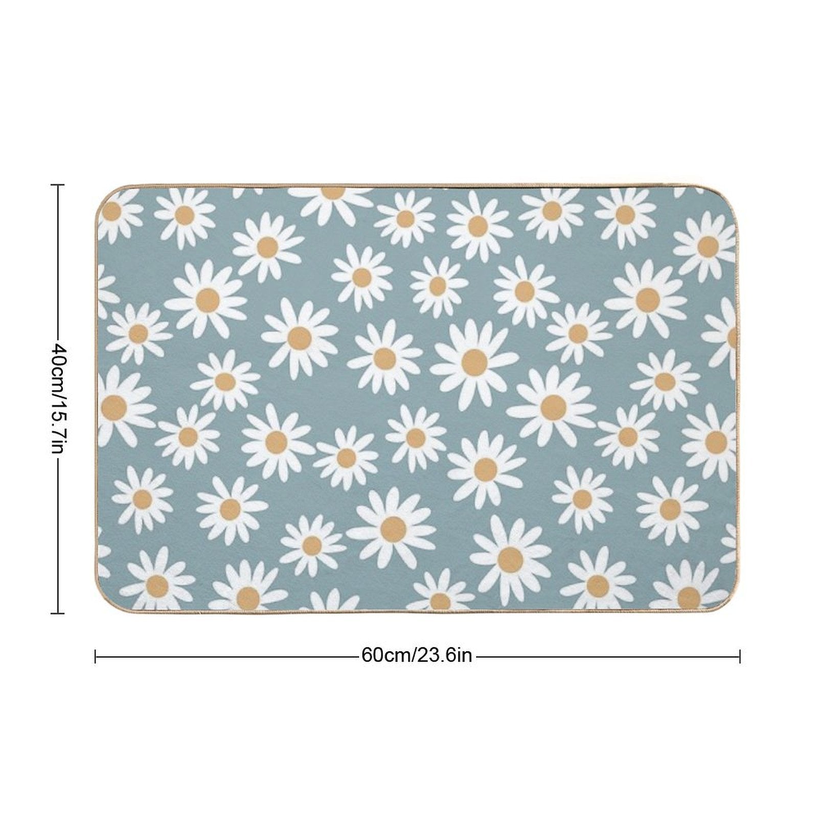 - Non-slip rubber backing grips floors securely, ideal for Blue Daisies - Daisy Pattern, Floral, Florals, Flower, Retro, Vintage, 70s, Camel, Brown, Rust, Earthy, Terracotta Mat placements on tiles, wood, or marble.
