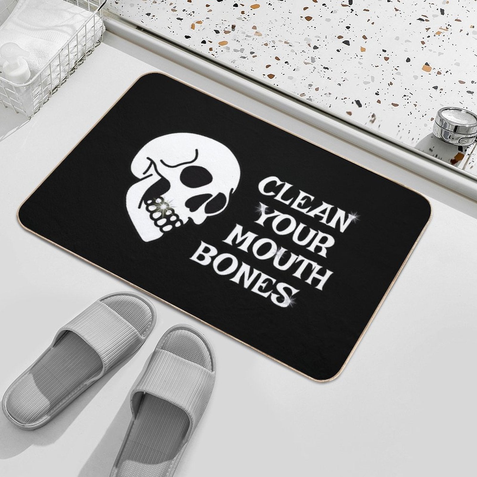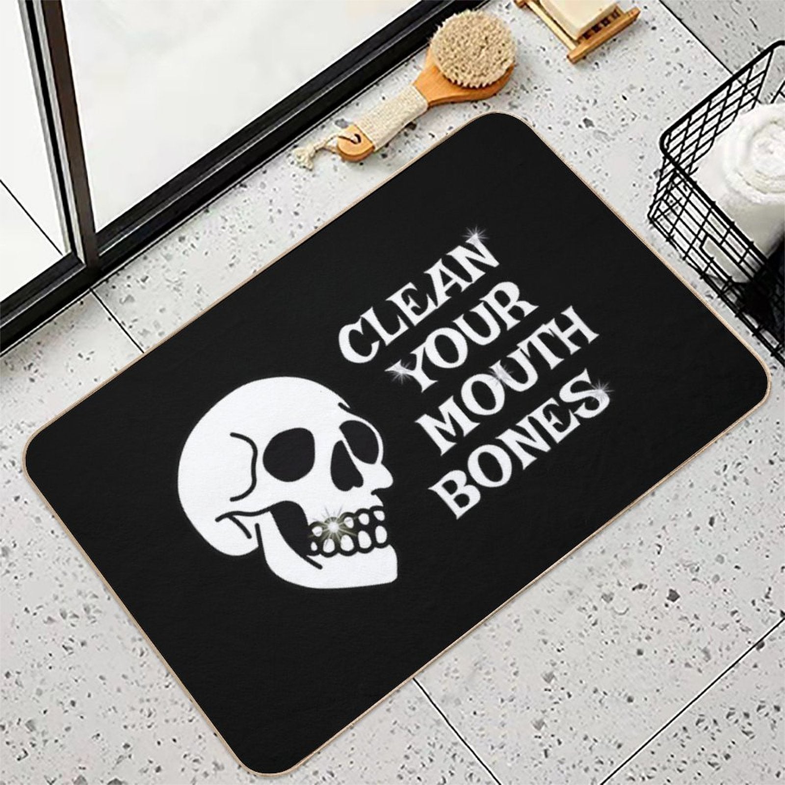 Transform your entryways with the Clean Your Mouth Bones - White Mat – crafted from durable diatomite-inspired material and plush 1600GSM flannel for unmatched dirt-trapping power. Designed for Clean Your Mouth Bones - White homes and high-traffic spaces, this eco-friendly mat combines slip-resistant safety with effortless maintenance. Whether placed in bathrooms, vacation cabins, or bustling Clean Your Mouth Bones - White office lobbies, it keeps floors pristine and dry.