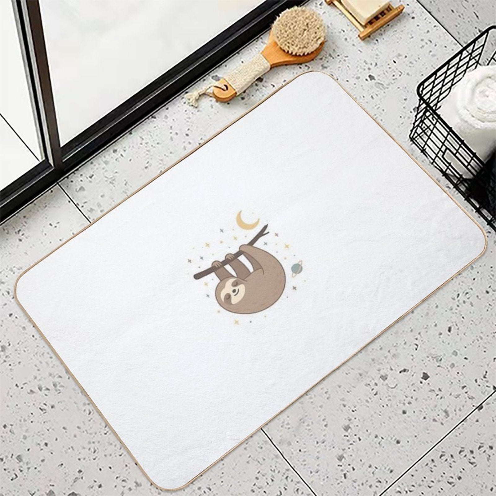 - Rapid-drying flannel soaks up water 3x faster than standard mats, preventing puddles in Cosmic Sloth – Sleepy Sloth Hanging in Space bathrooms or poolside areas.