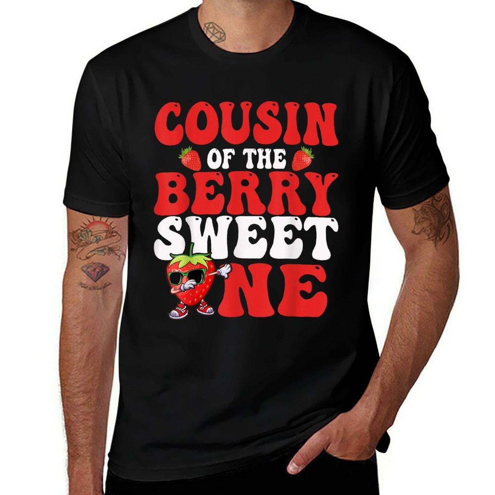 - Avoid bleach to preserve the Cousin Of The Berry Sweet One Strawberry First Birthday T-shirt’s bold graphics and cotton integrity.