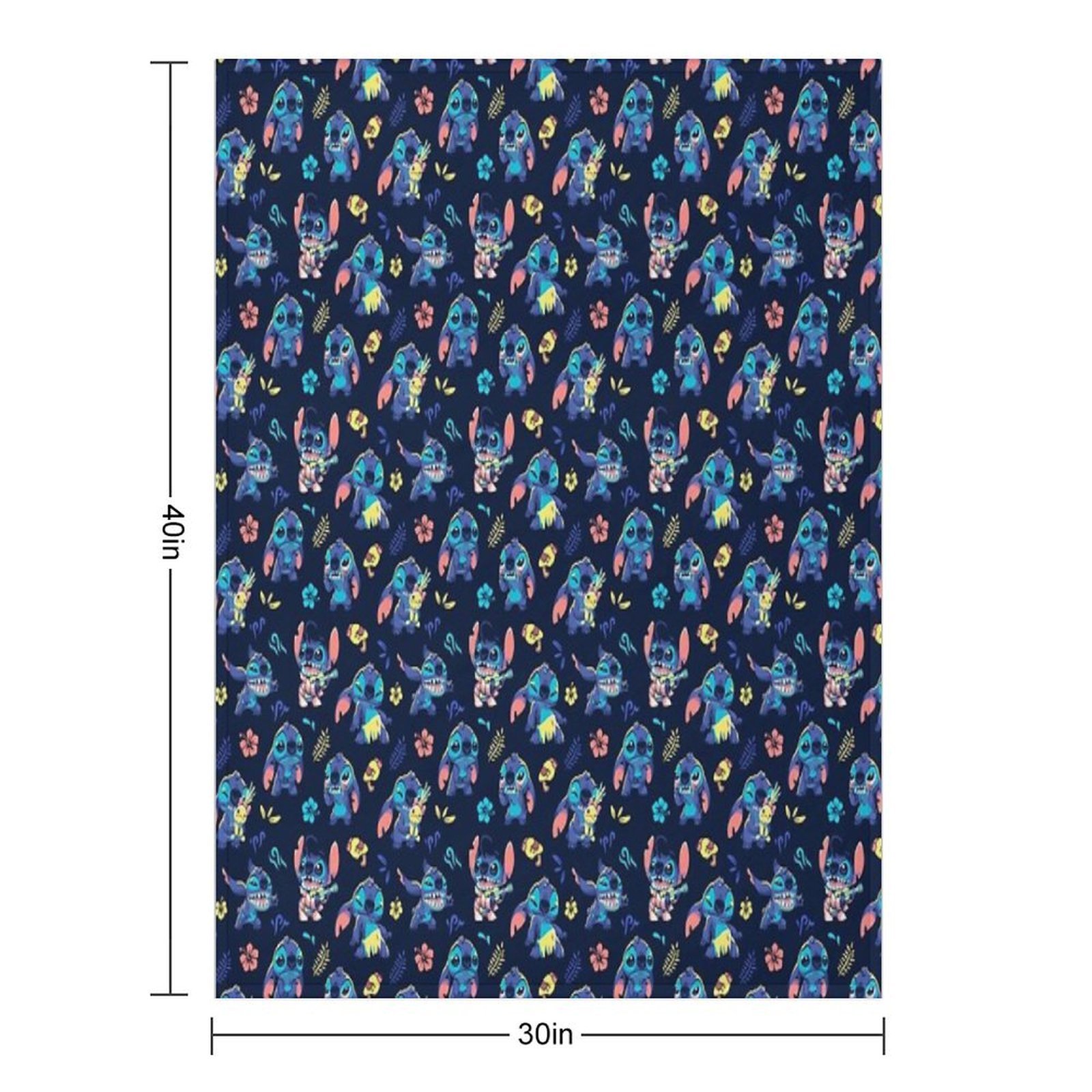 Cute Stitch Pattern 90s Kid, Cartoon Alien, Ohana, Hawaii Blanket Size Chart:
