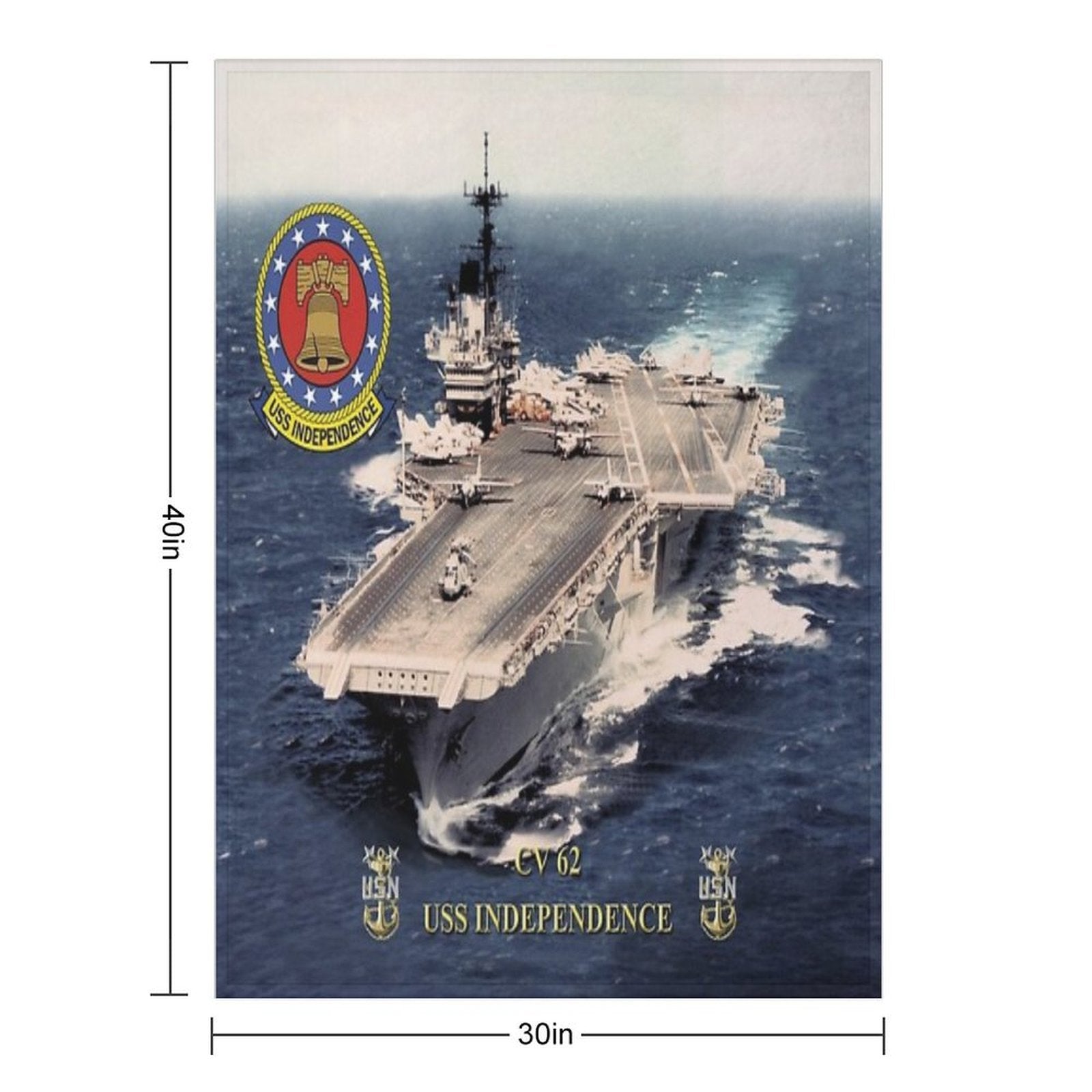 CV-62 USS Independence Blanket Size Chart: