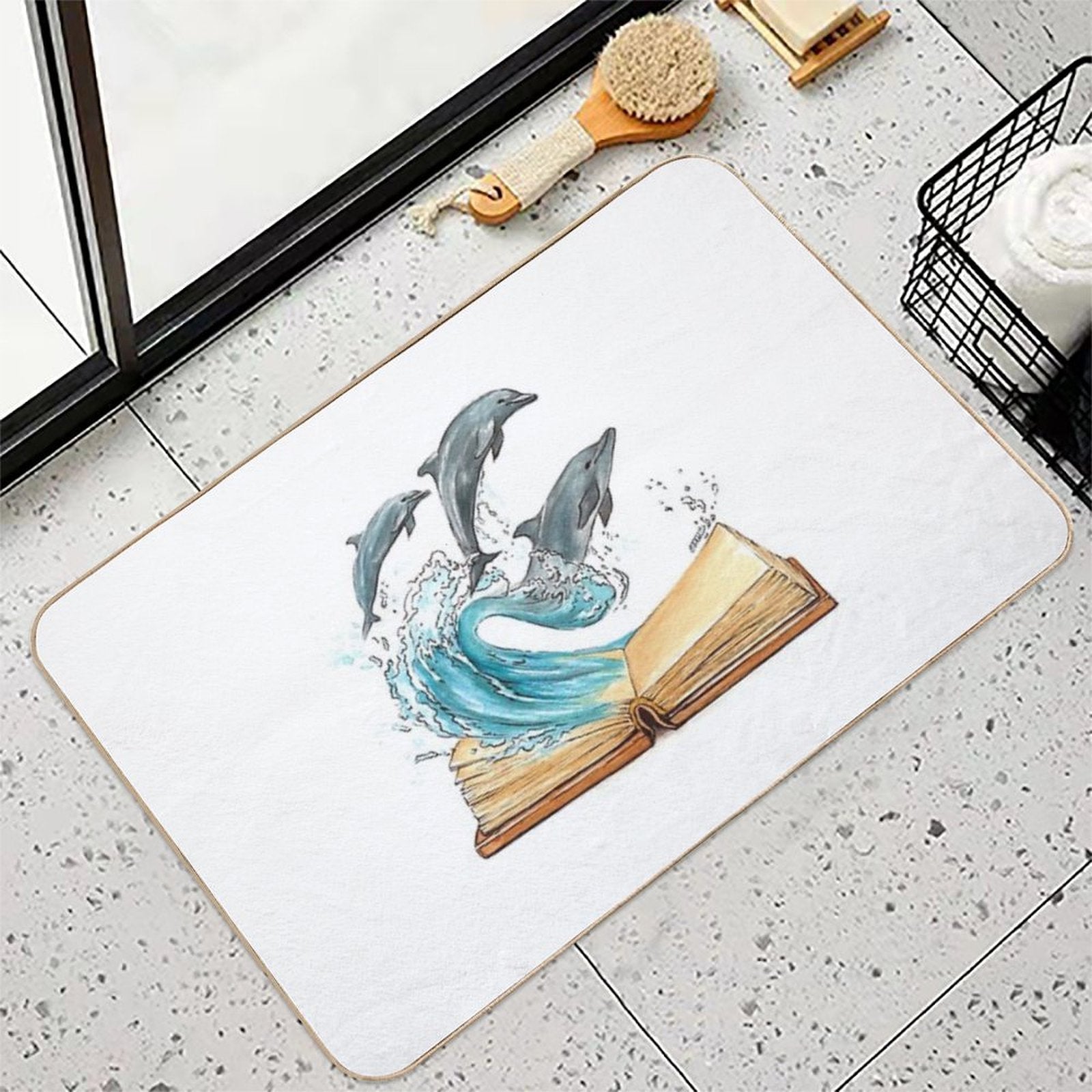 - Rapid-drying flannel soaks up water 3x faster than standard mats, preventing puddles in Dolphins Jumping from Old Book Watercolor Illustration bathrooms or poolside areas.
