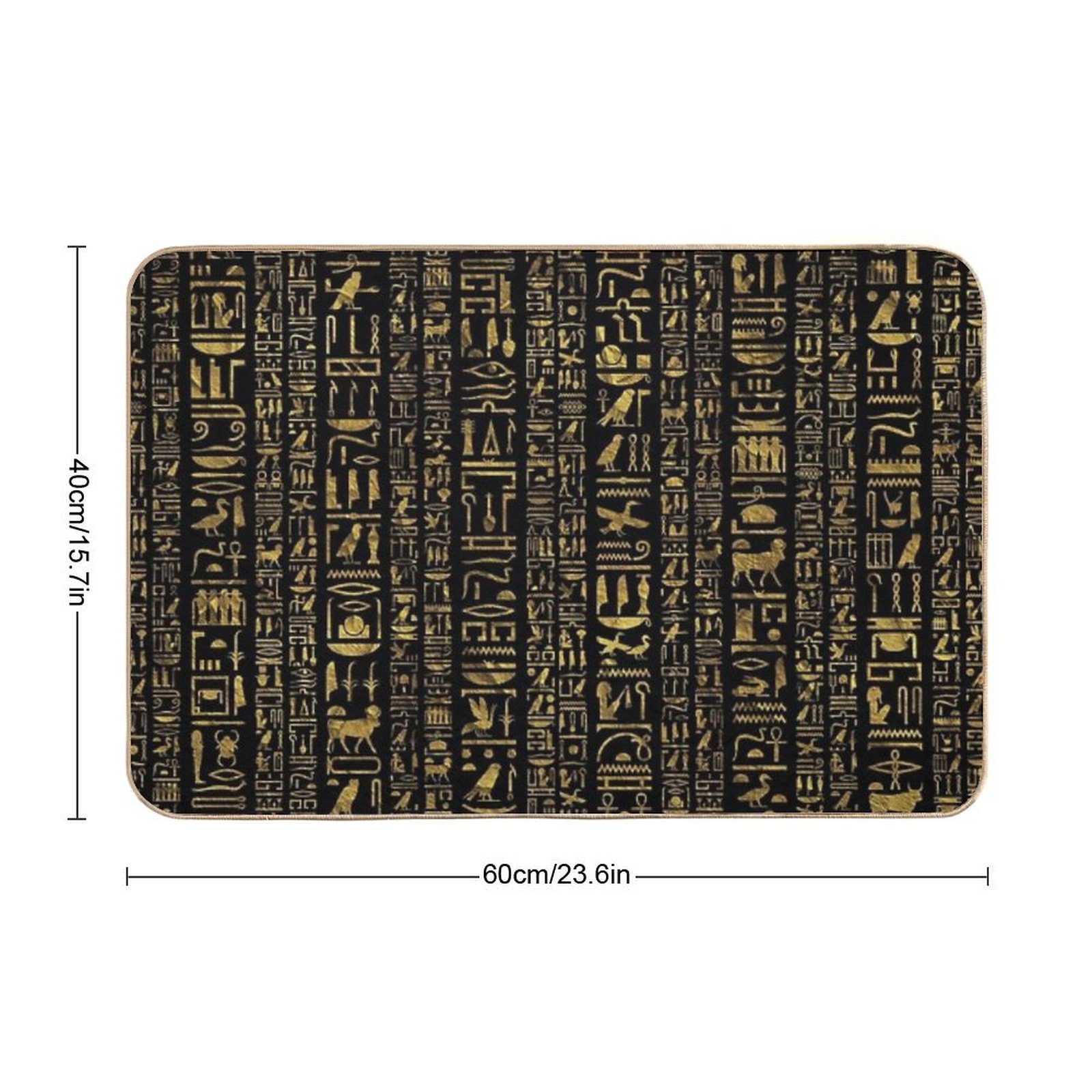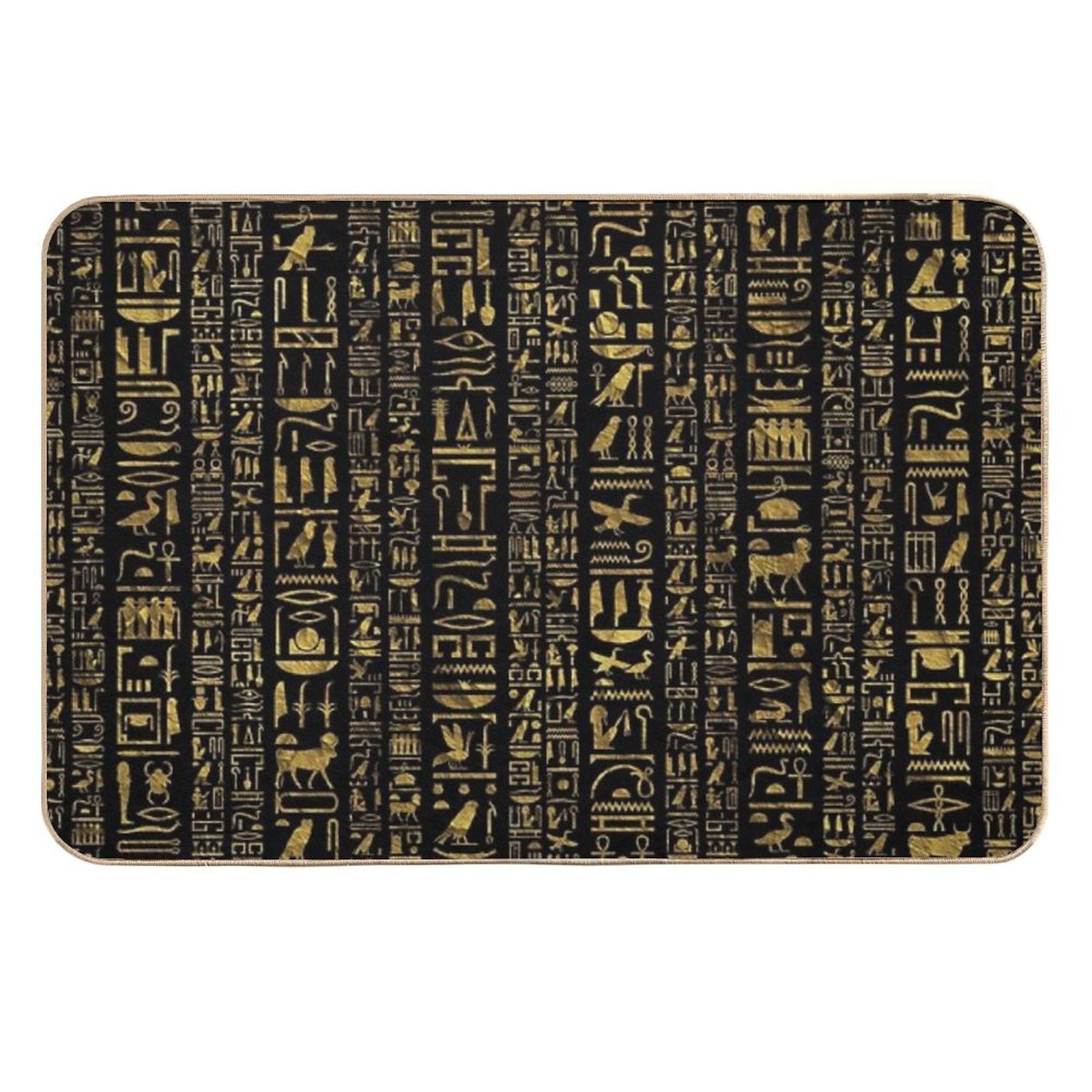 - Use as a vanity rug, guest suite accent, or mudroom defender – the Egyptian Hieroglyphs Vintage Gld on Black Mat adapts to any space.