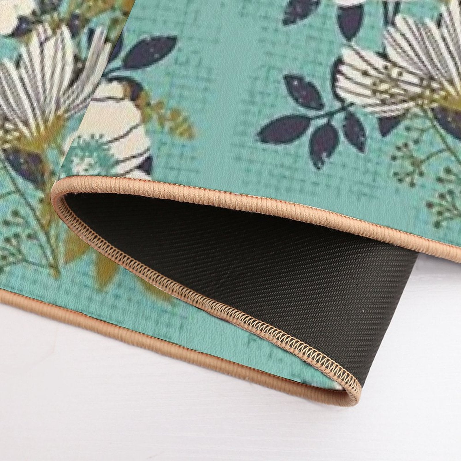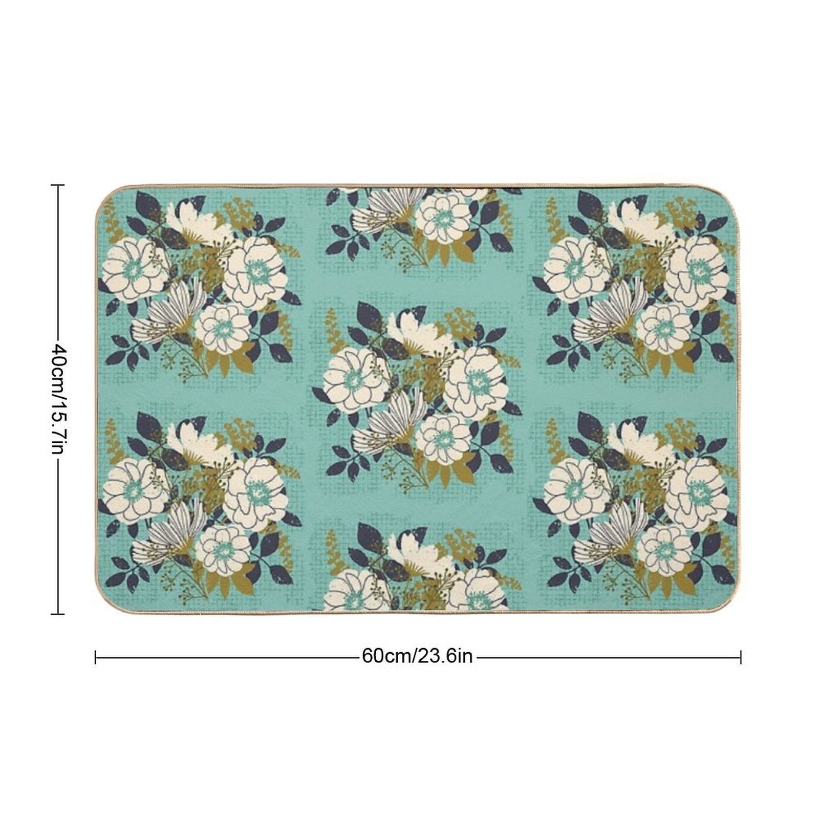 - Non-slip rubber backing grips floors securely, ideal for Floral Bouquet ~ on Turquoise Mat placements on tiles, wood, or marble.