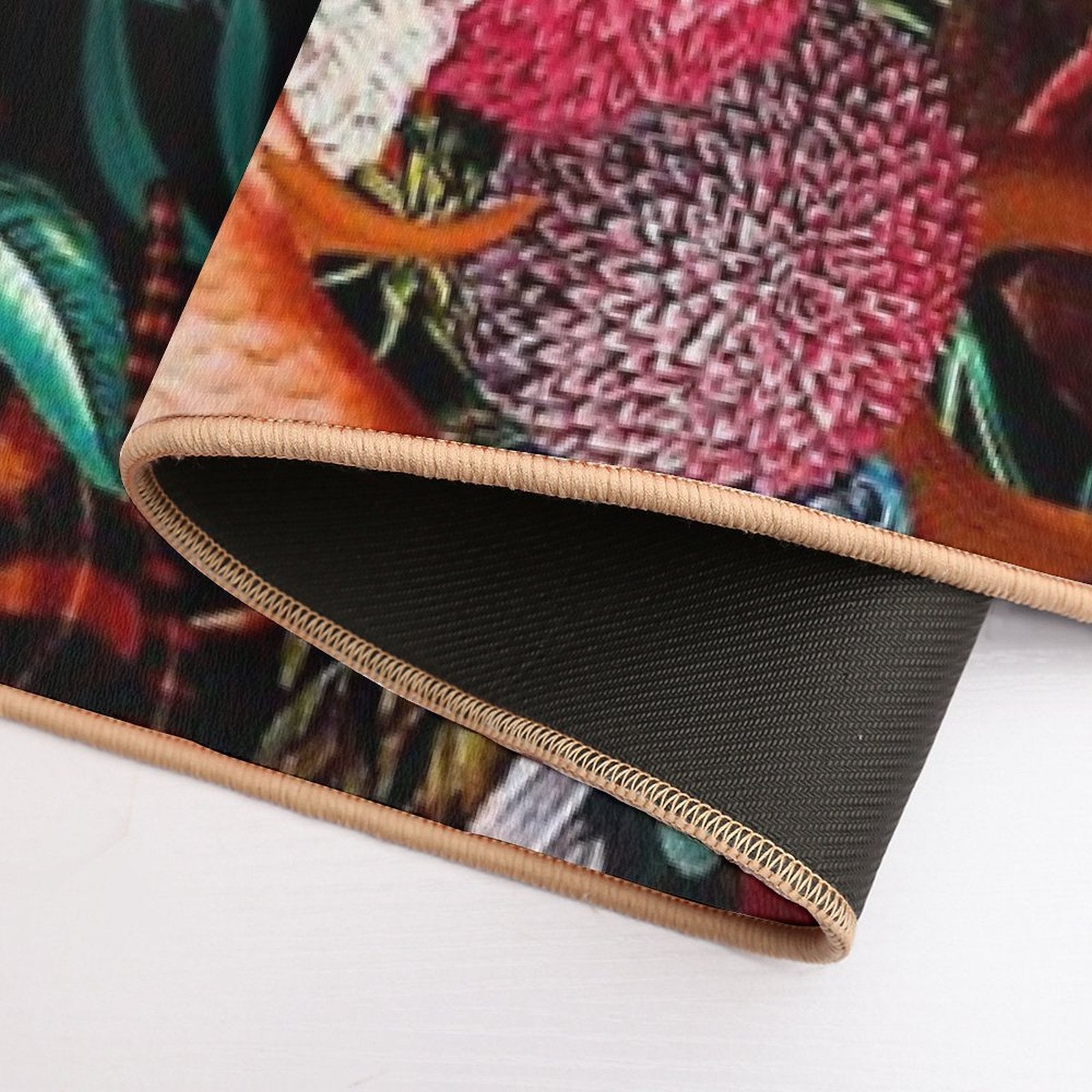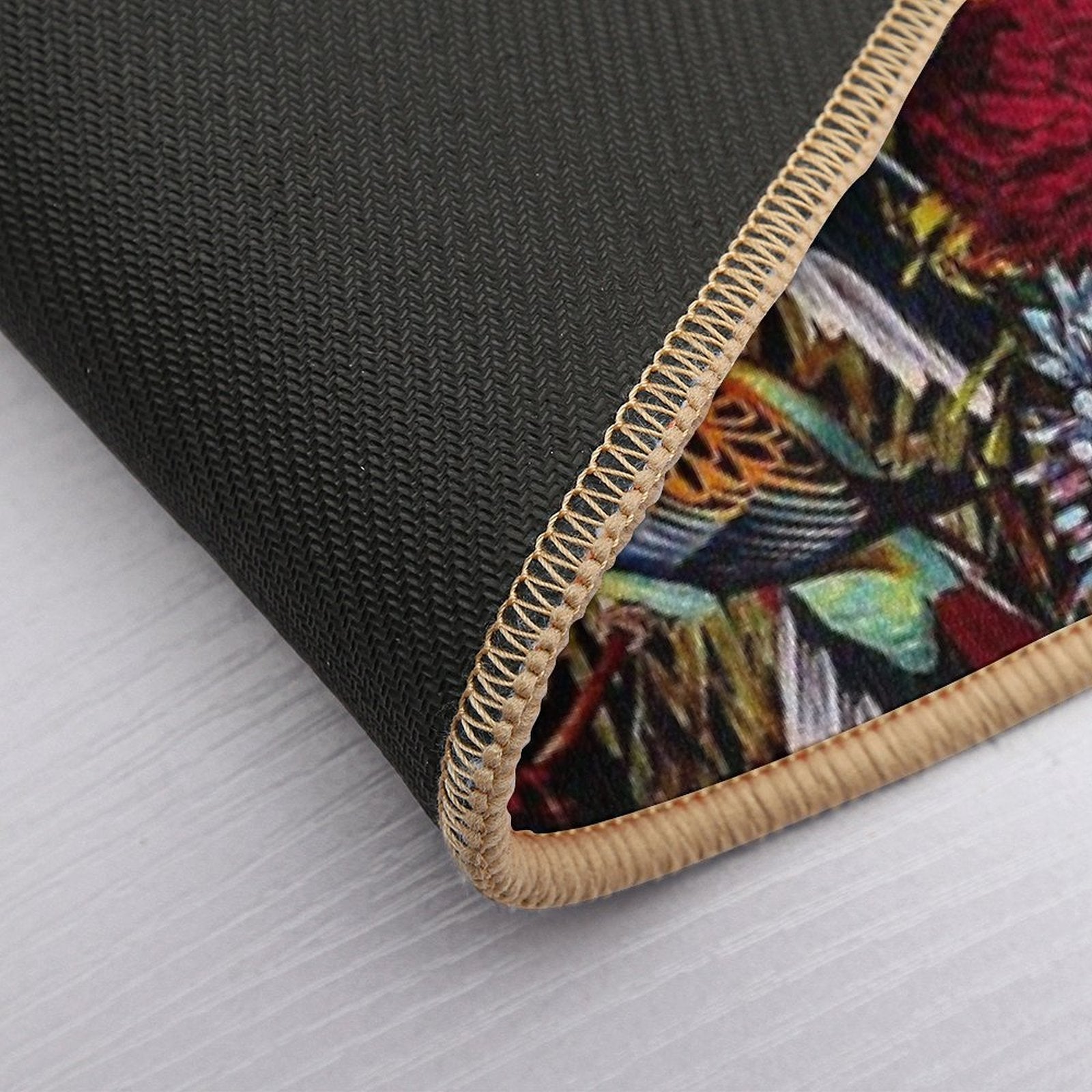- Non-slip rubber backing grips floors securely, ideal for Flowers And Animals Pattern II Mat placements on tiles, wood, or marble.