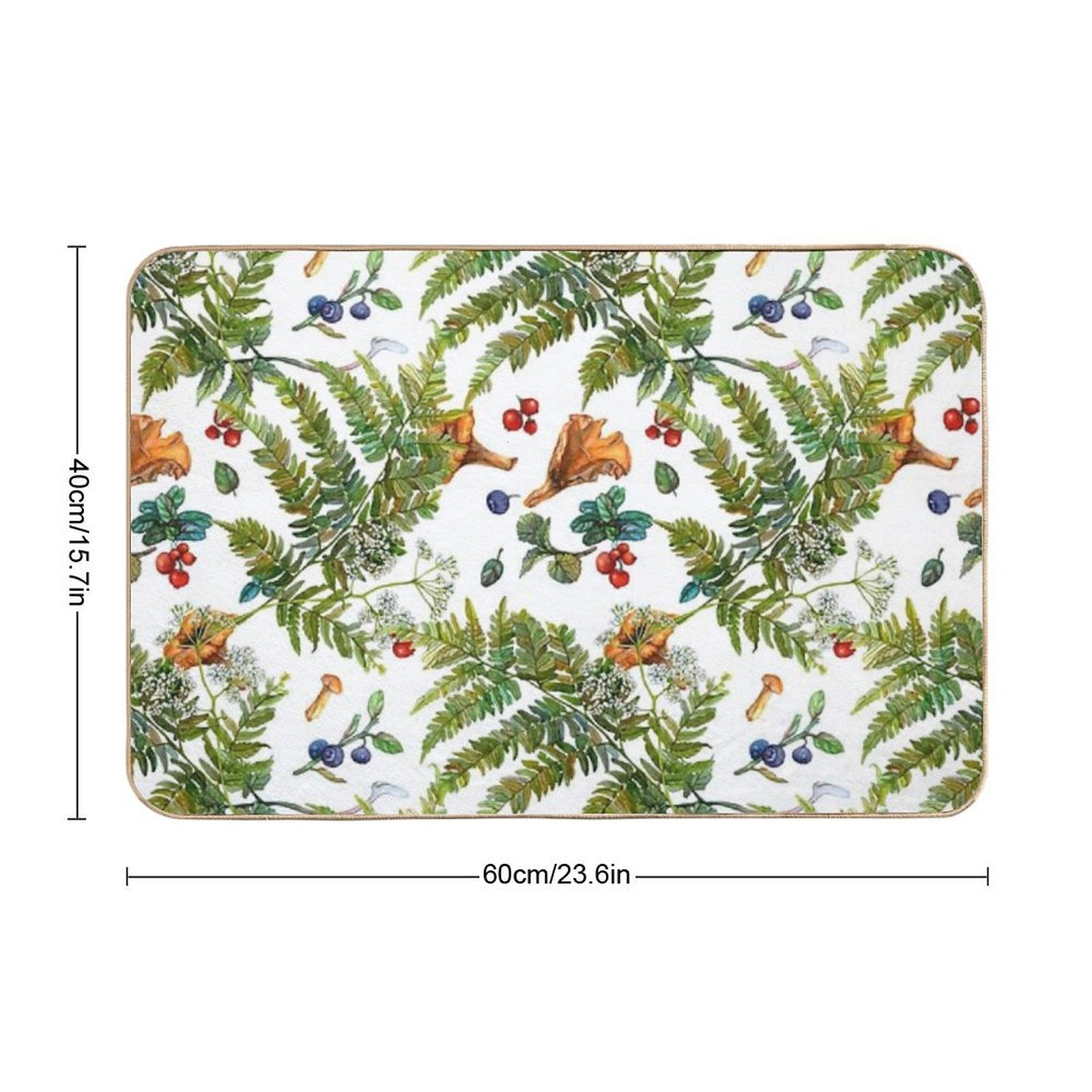- Use as a vanity rug, guest suite accent, or mudroom defender – the Forest Ferns, Berries And Mushrooms Mat adapts to any space.