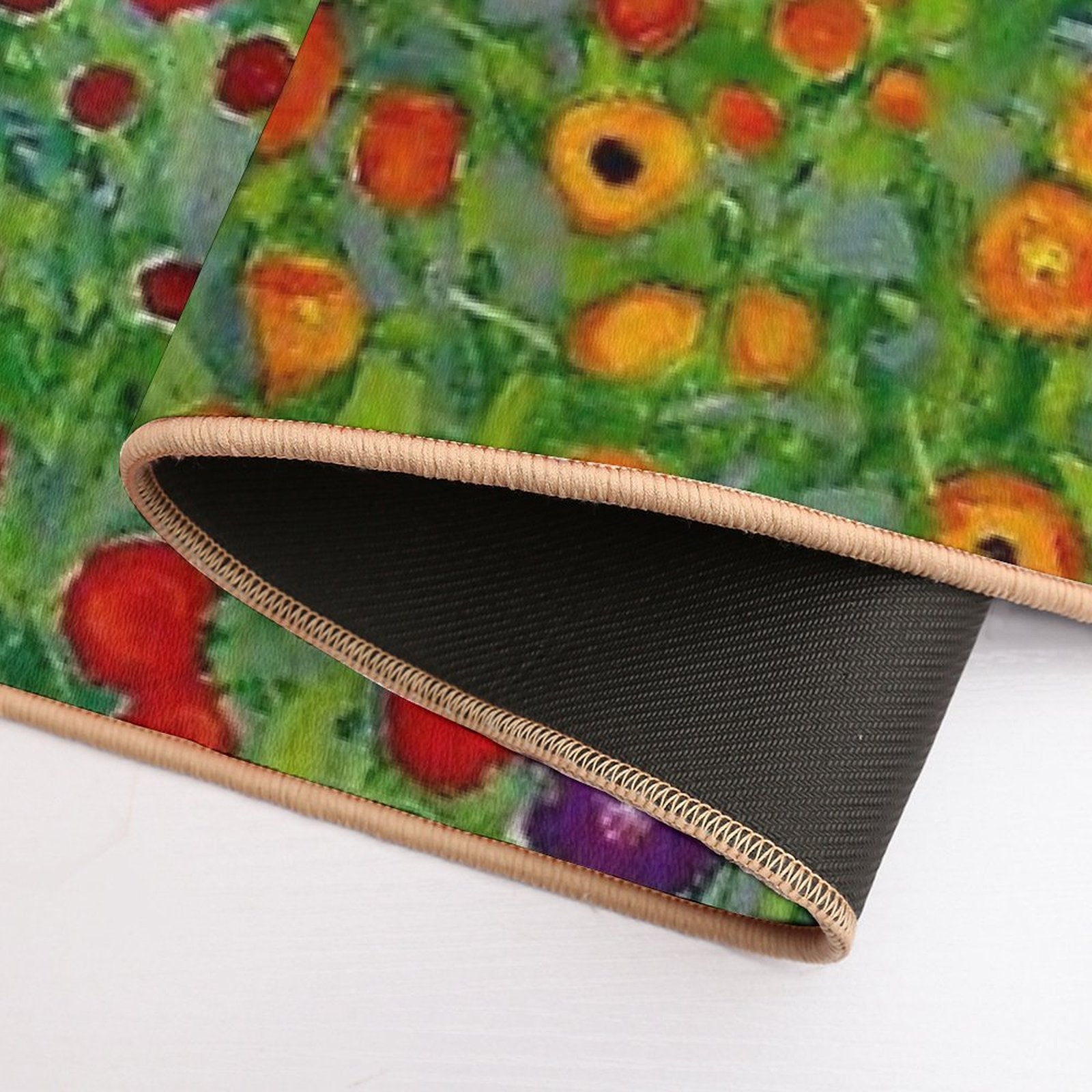 - Non-slip rubber backing grips floors securely, ideal for GUSTAV KLIMT Vintage 1918 Bauerngarten Flower Garden Print Mat placements on tiles, wood, or marble.