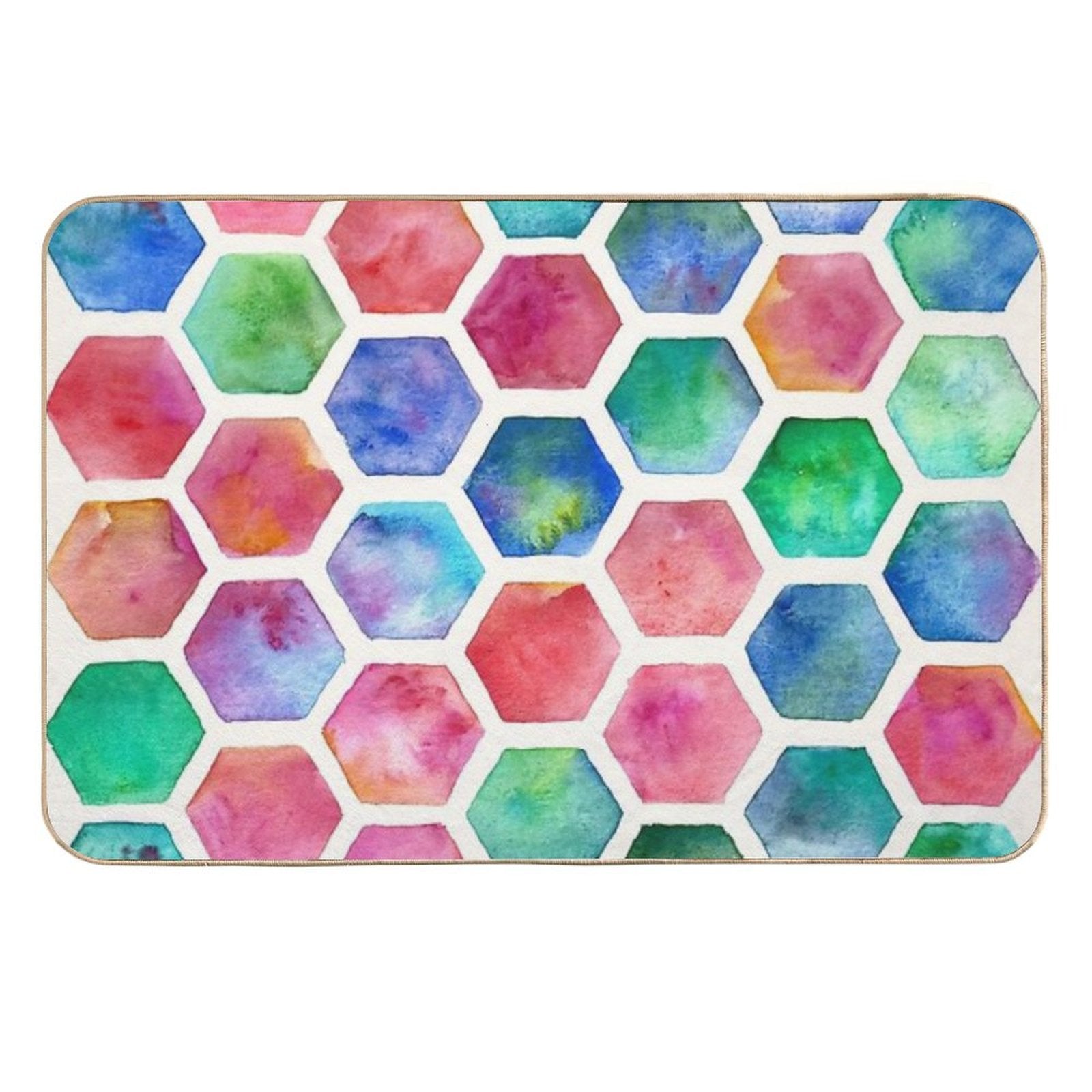 Hand Painted Watercolor Honeycomb Pattern Non-Slip Bath Mat