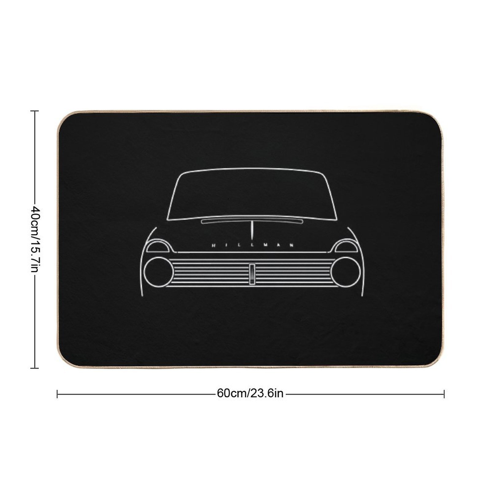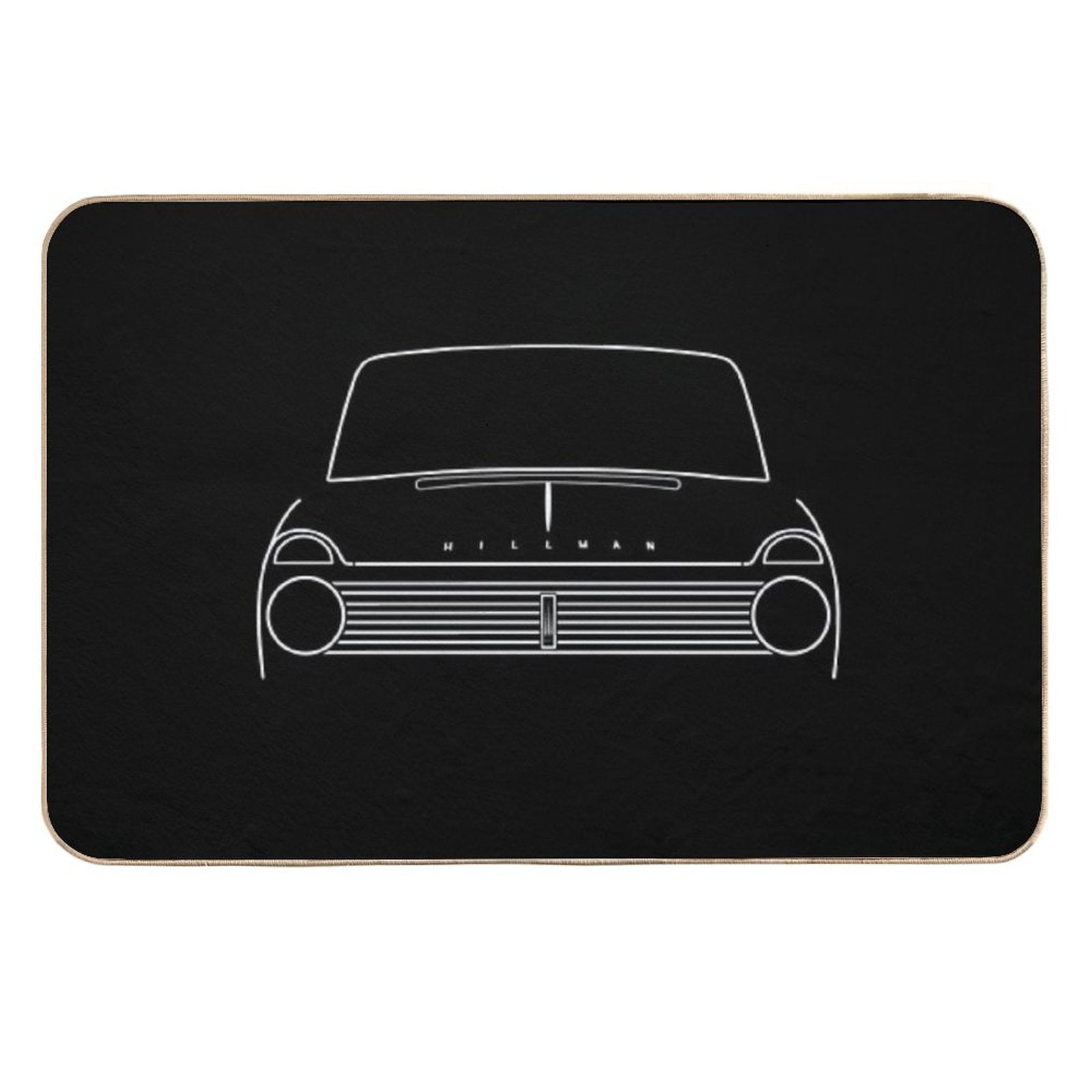 - Use as a vanity rug, guest suite accent, or mudroom defender – the Hillman Super Minx Classic 1960s British Car White Outline Graphic Mat adapts to any space.