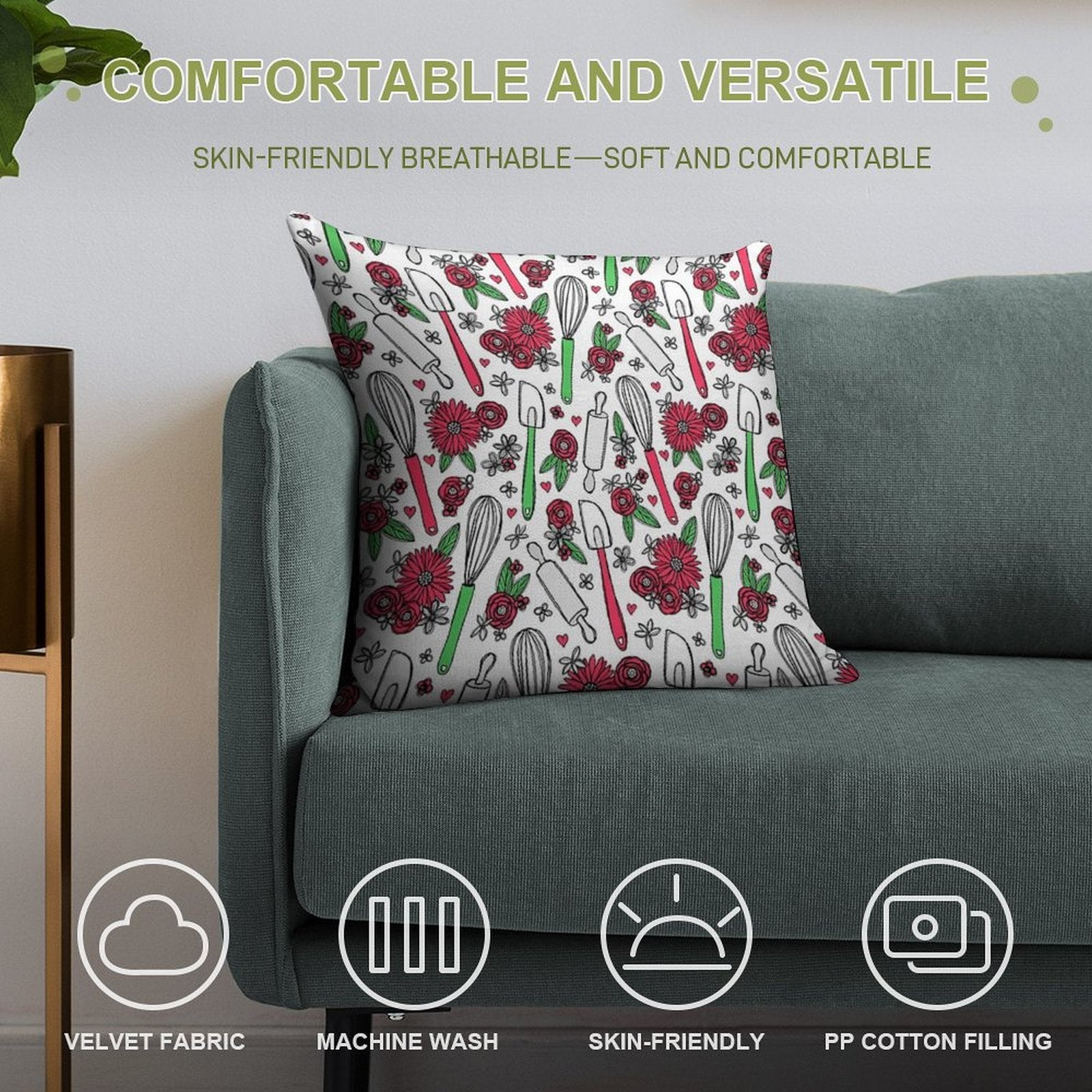 Holiday Cooking & Baking Soft Luxury Feel Throw Pillow