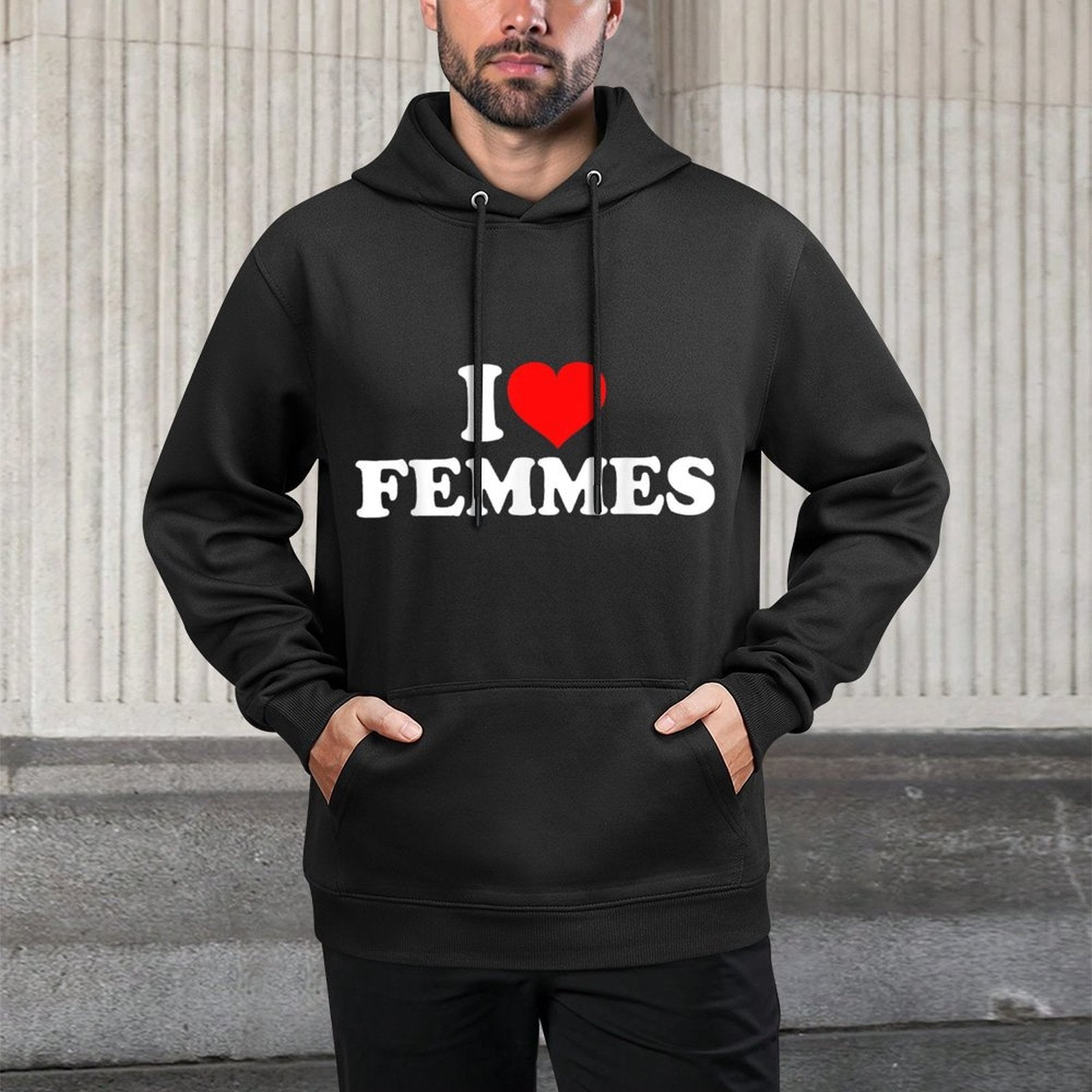 Elevate your casual wardrobe with the I Love Femmes Hoodie – crafted from premium 60% cotton and 40% polyester for everyday comfort and durability. Designed for I Love Femmes style enthusiasts who value both fit and function, this unisex sweatshirt features a relaxed silhouette, breathable fabric, and versatile streetwear appeal. Whether you're exploring the city, relaxing at home, or meeting friends for a I Love Femmes weekend outing, this hoodie delivers softness, style, and easy care in one timeless piece.