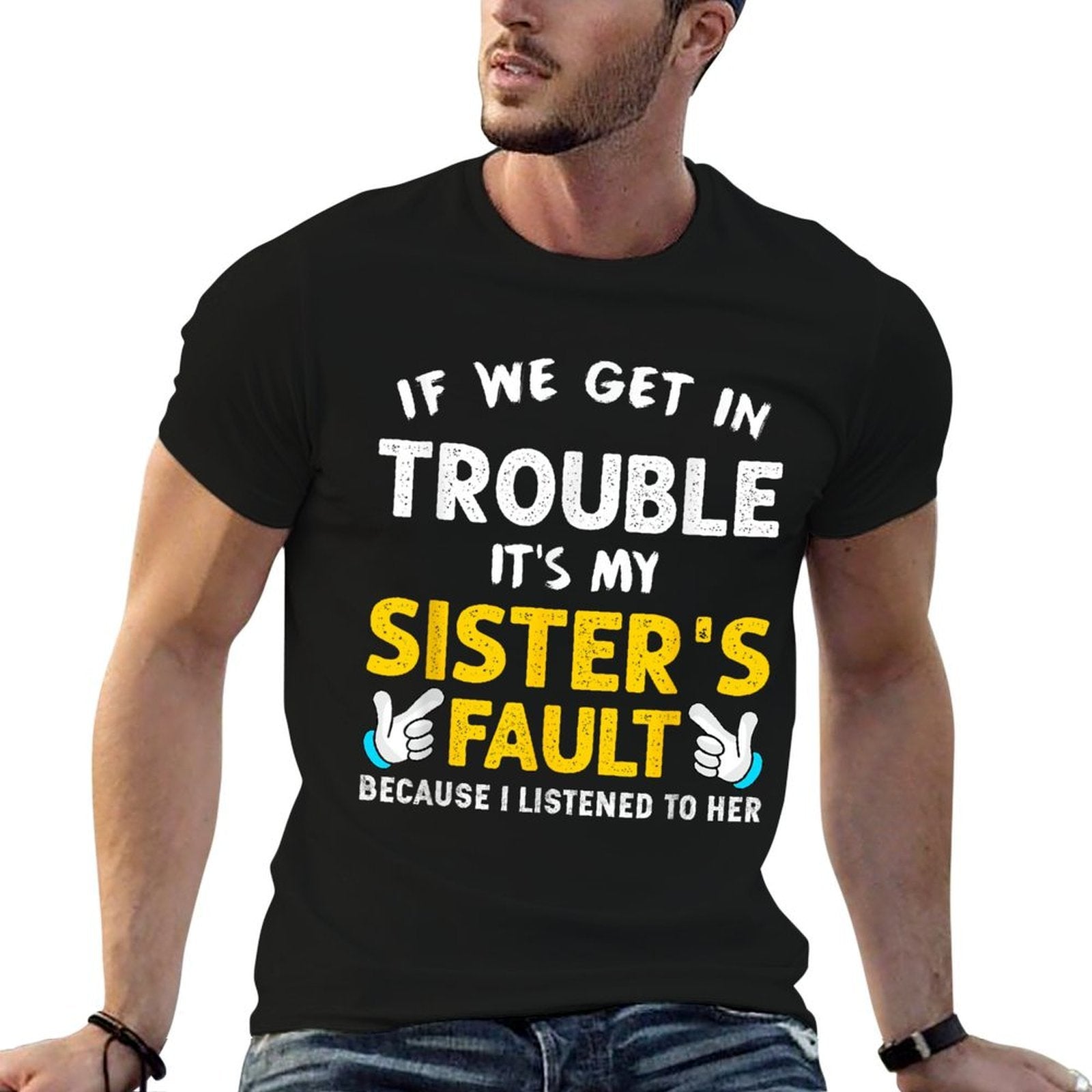 - Avoid bleach to preserve the If We Get In Trouble Its My Sisters Fault Funny T-shirt’s bold graphics and cotton integrity.