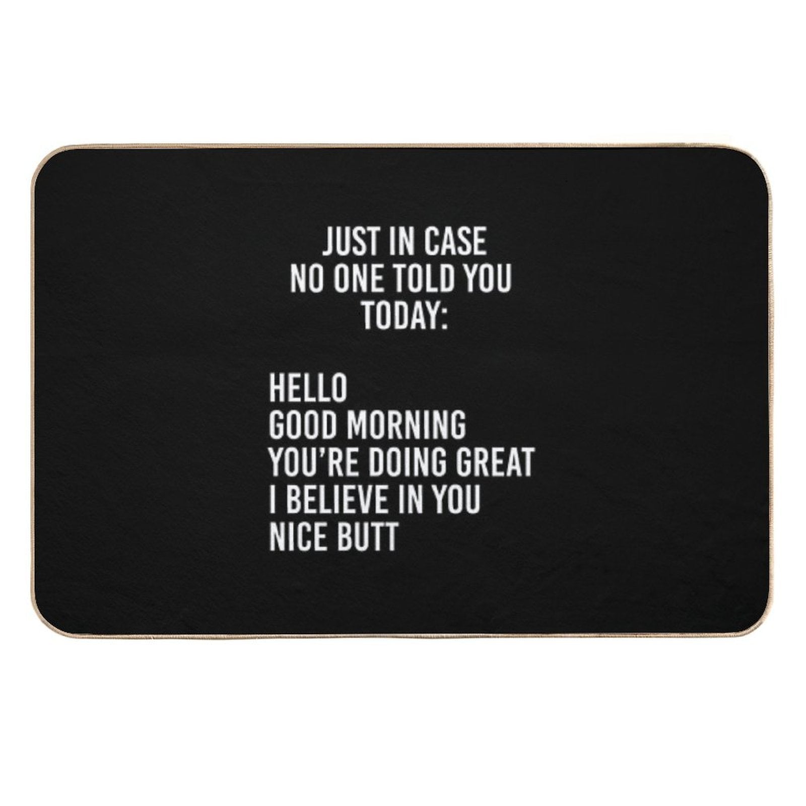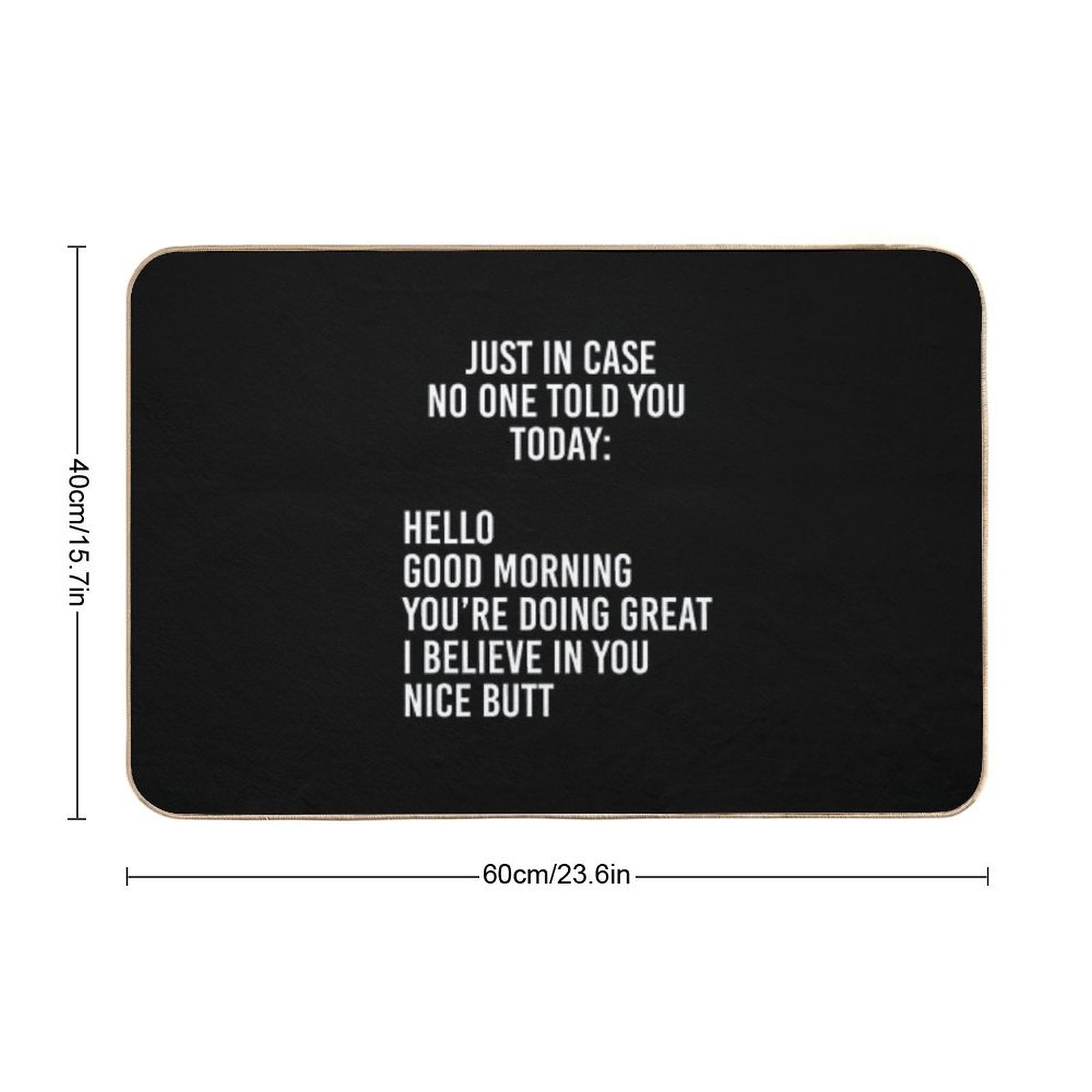 - Use as a vanity rug, guest suite accent, or mudroom defender – the Just in Case No One Told You Today Hello Good Morning You're Doing Great I Believe in You Mat adapts to any space.