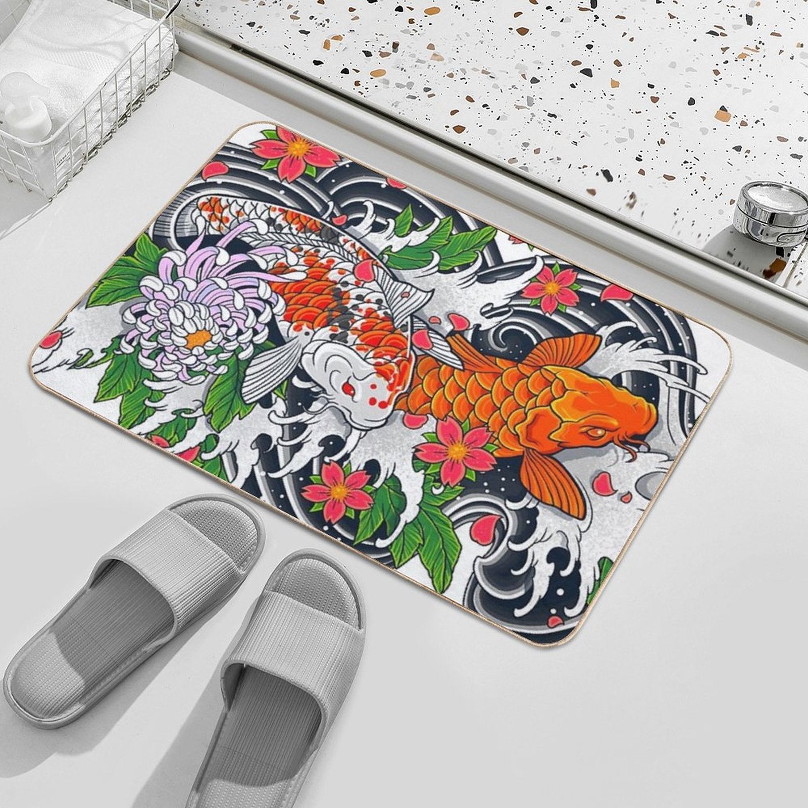 - Use as a vanity rug, guest suite accent, or mudroom defender – the Koi Fish Pond Mat adapts to any space.
