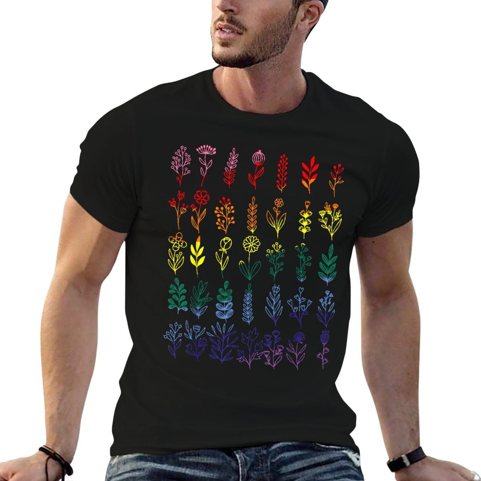 - Heat-transfer prints retain vibrant colors wash after wash, perfect for LGBTQ Wildflower Rainbow Plants Gardening Gay Pride casual outfits or statement streetwear.