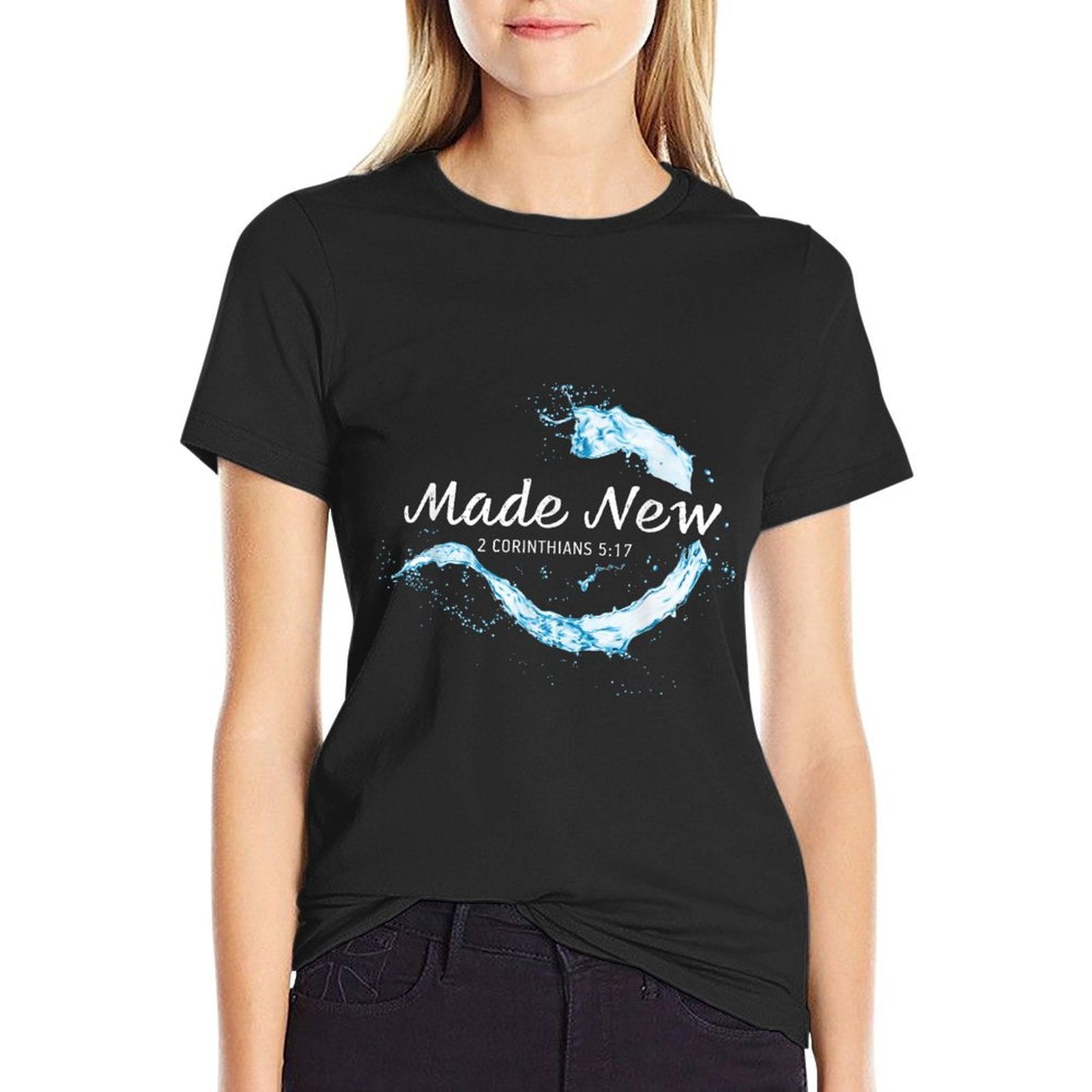 - Avoid bleach to preserve the Made New in Christ Jesus Christian Faith Baptism 2 Cor 517 T-shirt’s bold graphics and cotton integrity.