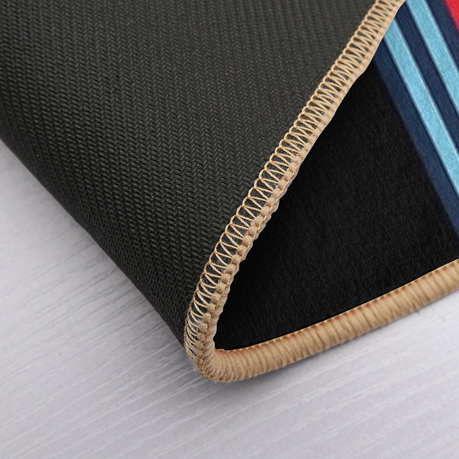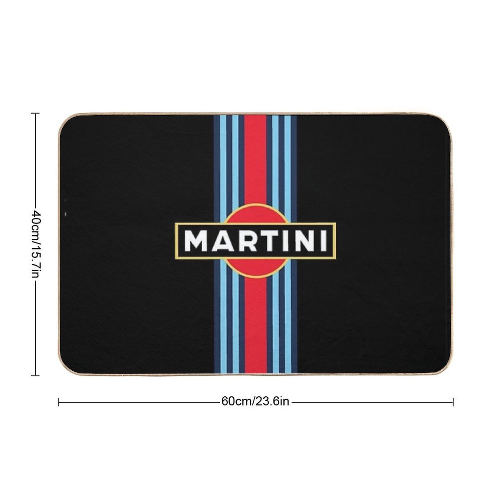 - Non-slip rubber backing grips floors securely, ideal for Martini Racing Stripe Mat placements on tiles, wood, or marble.