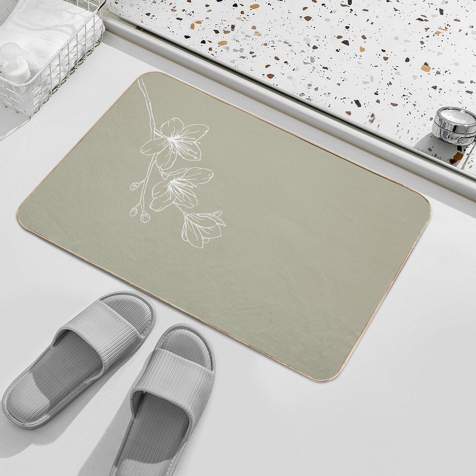 - Use as a vanity rug, guest suite accent, or mudroom defender – the Minimal Flower Print Green Mat adapts to any space.