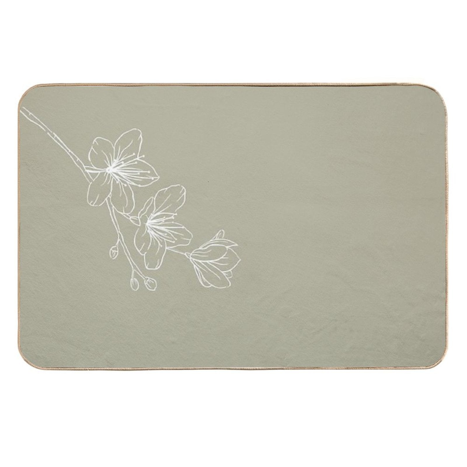 Minimal Flower Print Green Fade-Resistant Bath Mat