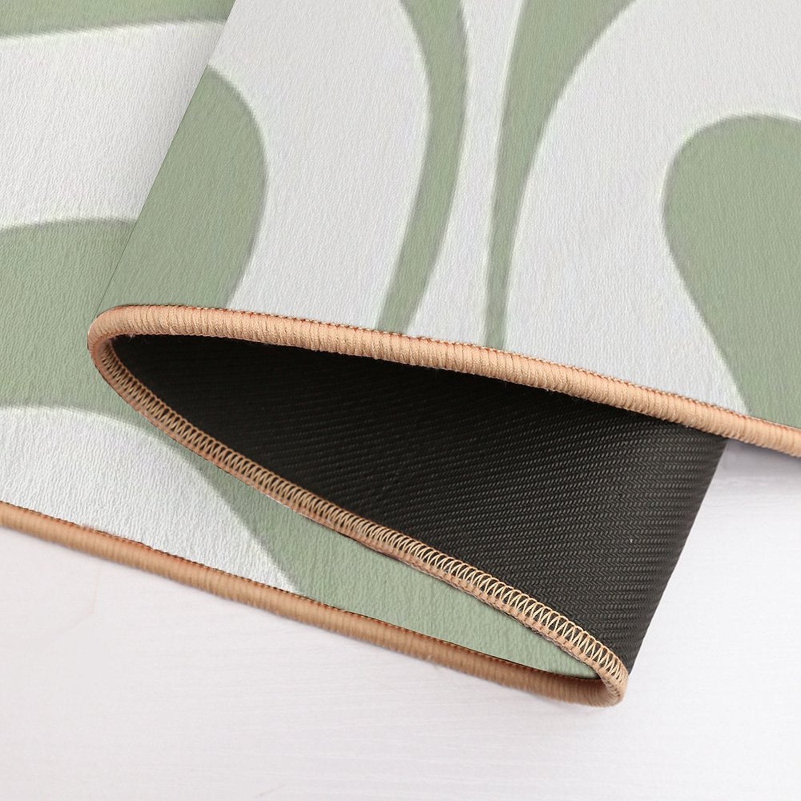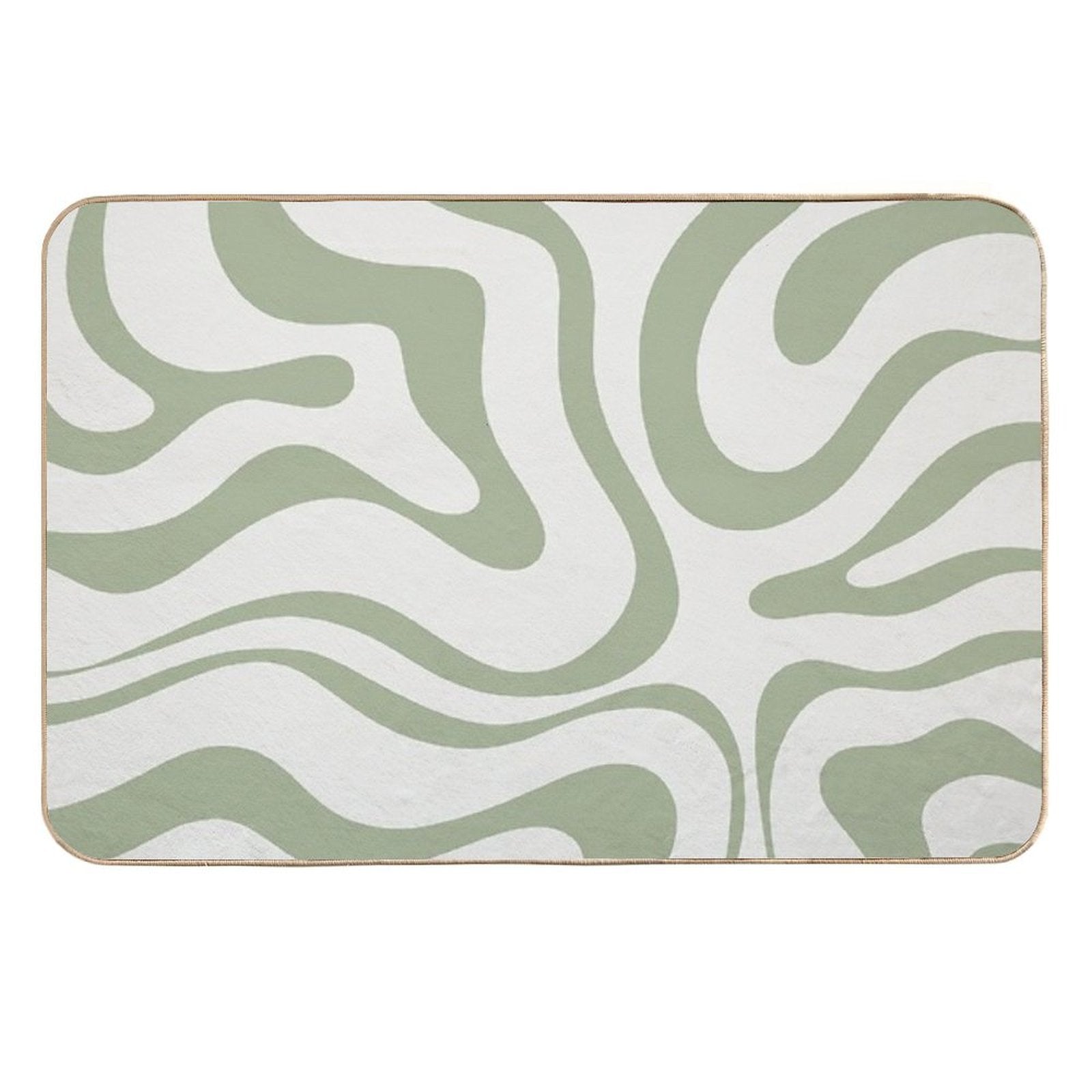 - Non-slip rubber backing grips floors securely, ideal for Modern Liquid Swirl Abstract Pattern in Sage Green Tones Mat placements on tiles, wood, or marble.