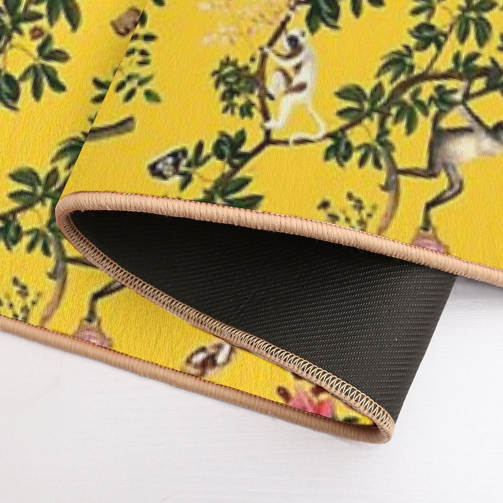 - Non-slip rubber backing grips floors securely, ideal for Monkey World Yellow Mat placements on tiles, wood, or marble.