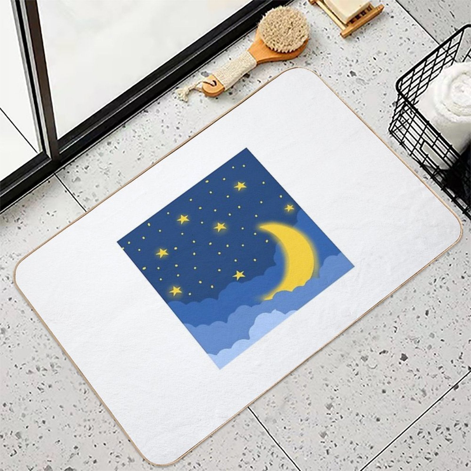 - Non-slip rubber backing grips floors securely, ideal for Moon Midnight Flat Design Mat placements on tiles, wood, or marble.