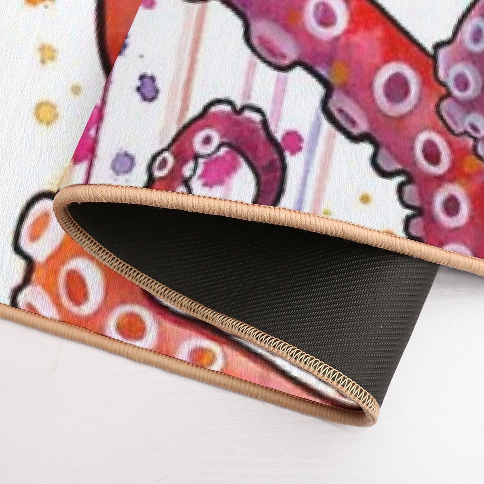 - Non-slip rubber backing grips floors securely, ideal for Octopus Sunrise Mat placements on tiles, wood, or marble.