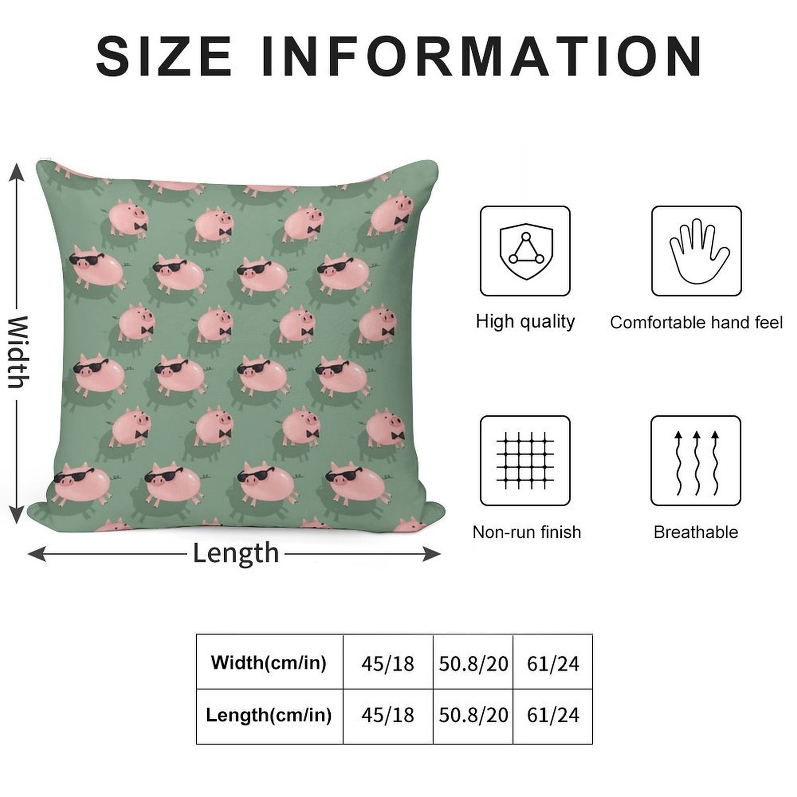 - Reinforced stitching along the edges prevents fraying and extends the life of your Pigs on Green Pillowcase.