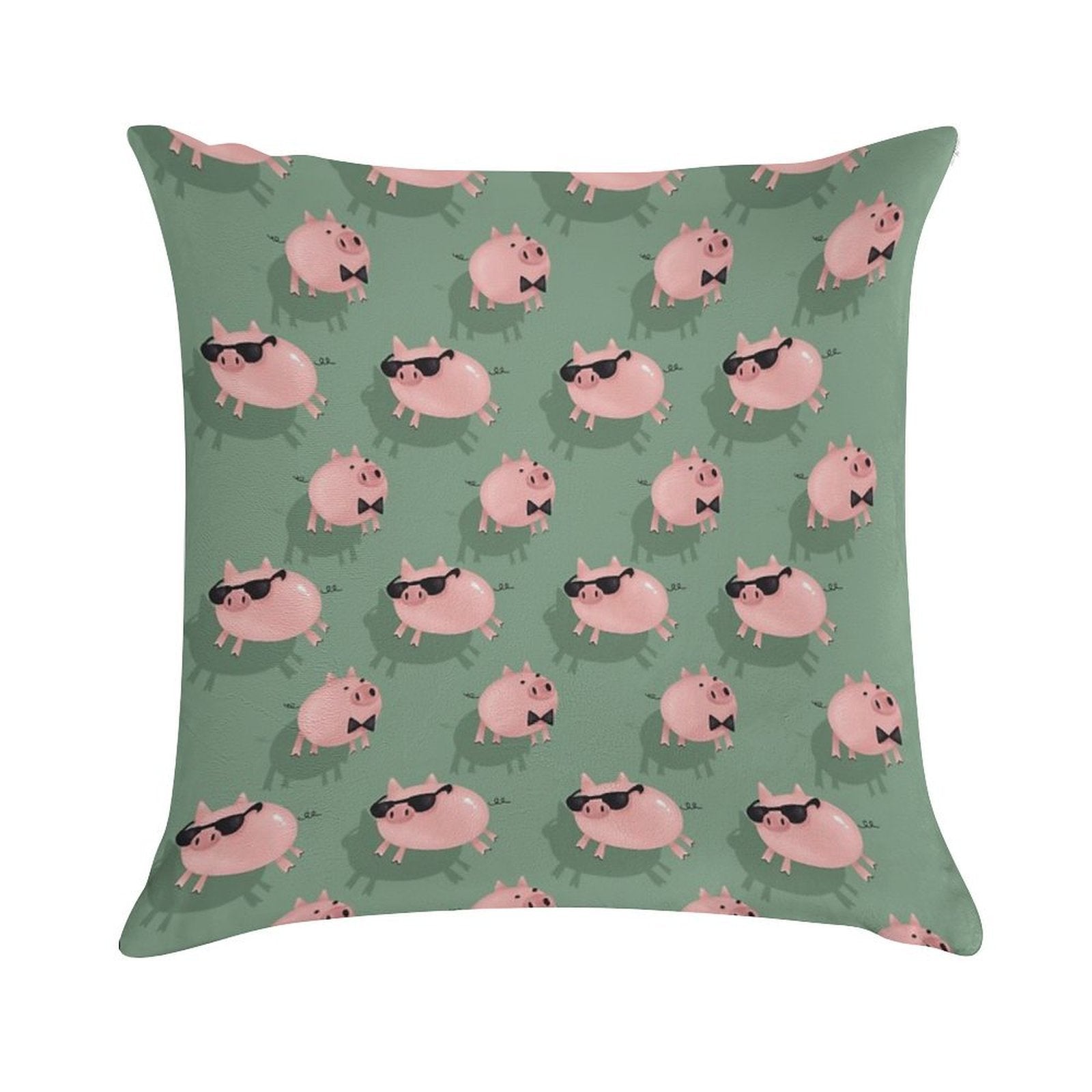 Pigs on Green Soft Hidden Zipper Throw Pillow