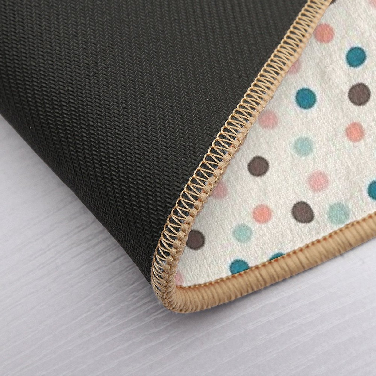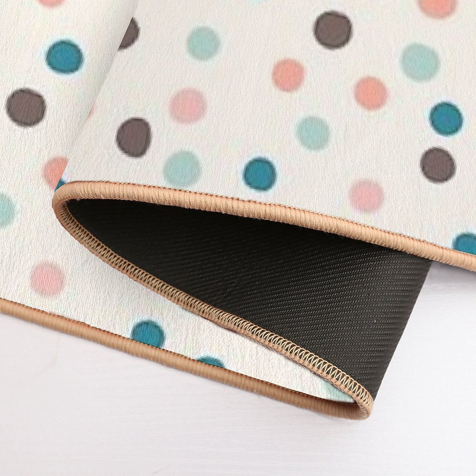 - Non-slip rubber backing grips floors securely, ideal for Pretty Confetti Polka Dot Pattern Mat placements on tiles, wood, or marble.