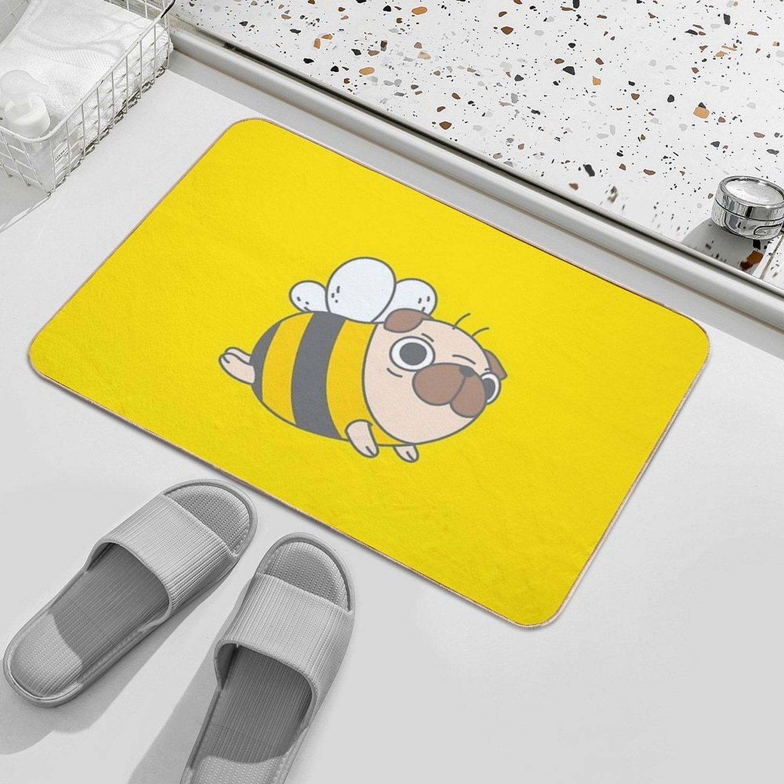 - Use as a vanity rug, guest suite accent, or mudroom defender – the Pug Bee Mat adapts to any space.