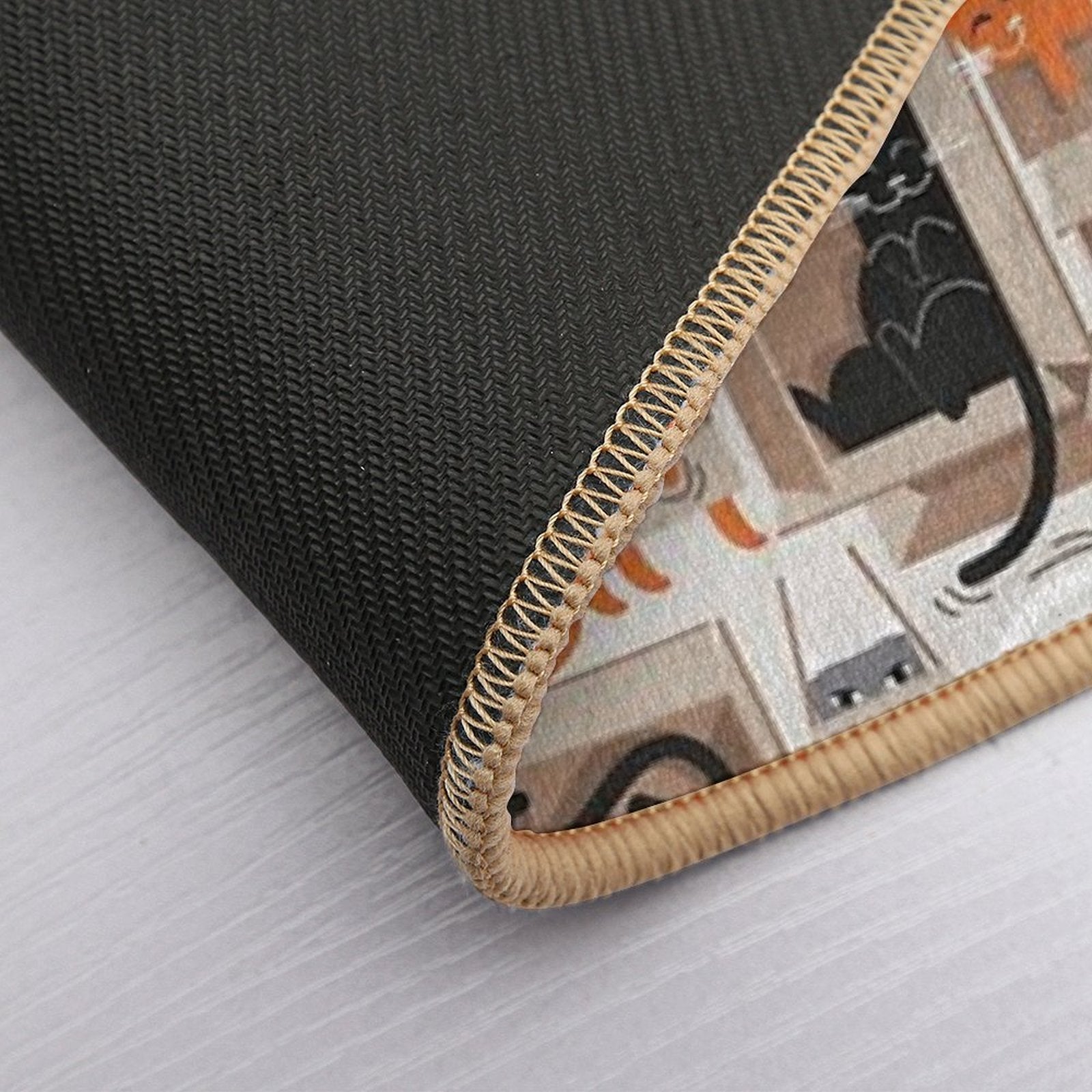 - Non-slip rubber backing grips floors securely, ideal for Purfect Feline Architecture Beige Background Cute Cats in Cardboard Boxes Mat placements on tiles, wood, or marble.