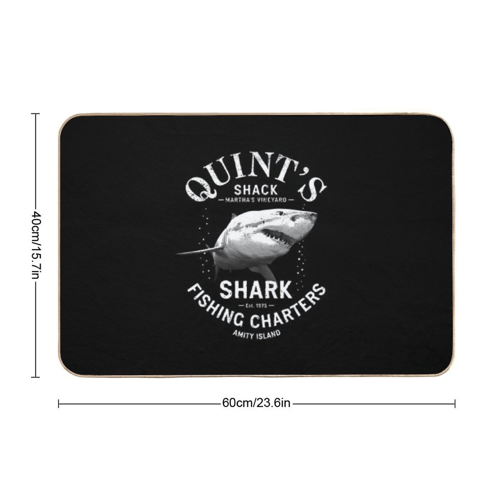 - Use as a vanity rug, guest suite accent, or mudroom defender – the Quint's Shark Fishing Charters Mat adapts to any space.