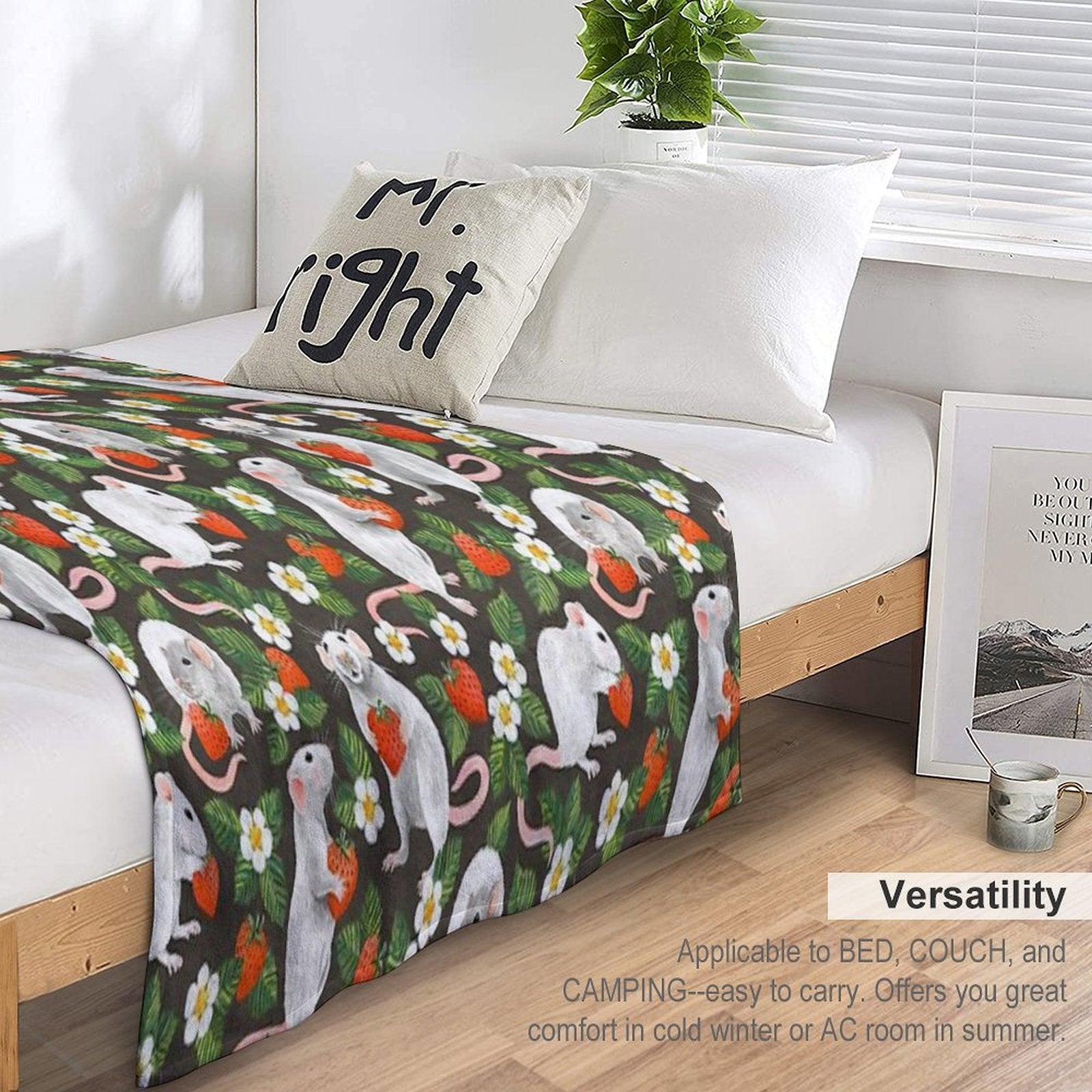 - Perfect for chilly movie nights, camping trips, or adding a cozy touch to your Rats Love Strawberries on Vintage Dark Brown-styled living space.