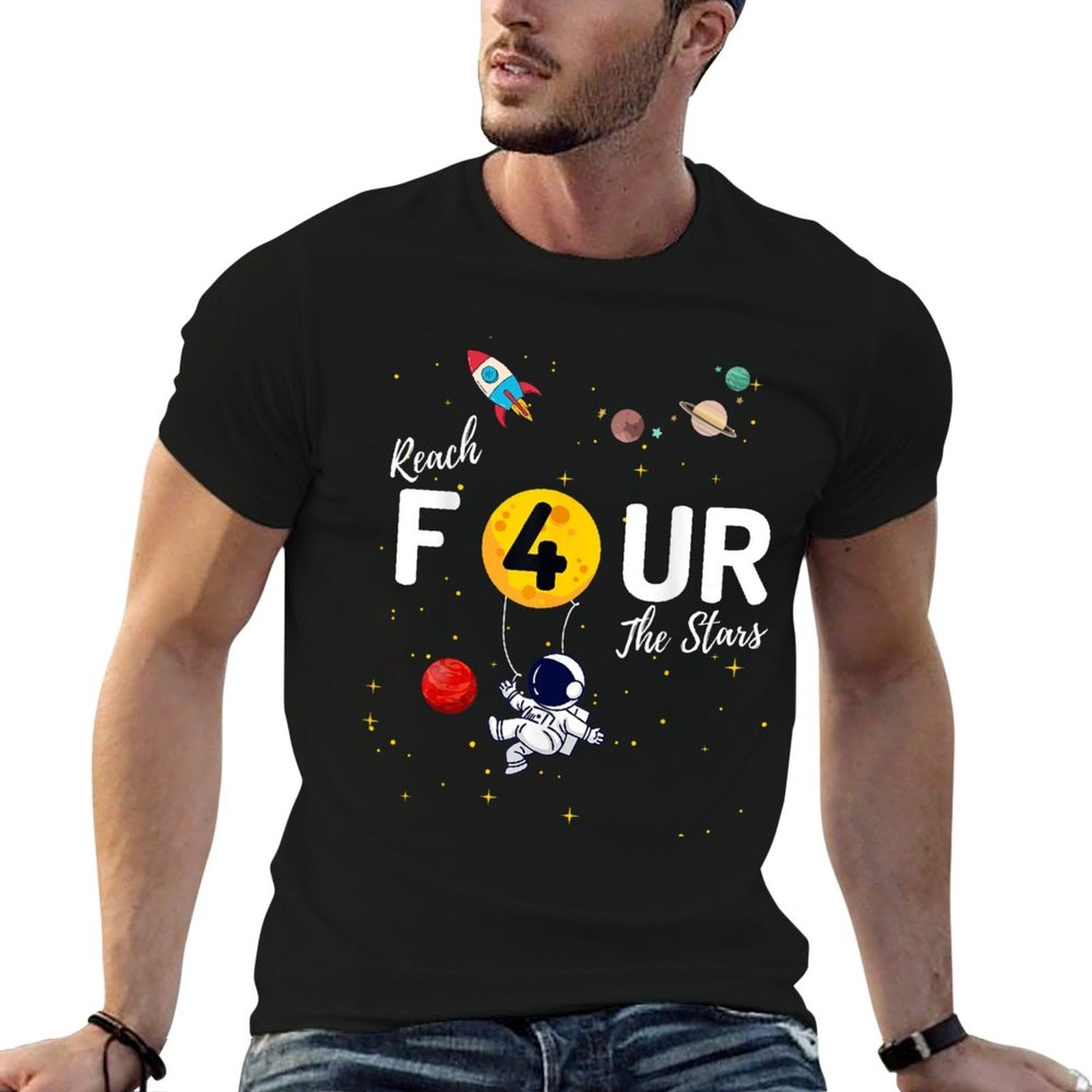 - Heat-transfer prints retain vibrant colors wash after wash, perfect for Reach 4 The Stars Child's 4th Birthday Party casual outfits or statement streetwear.