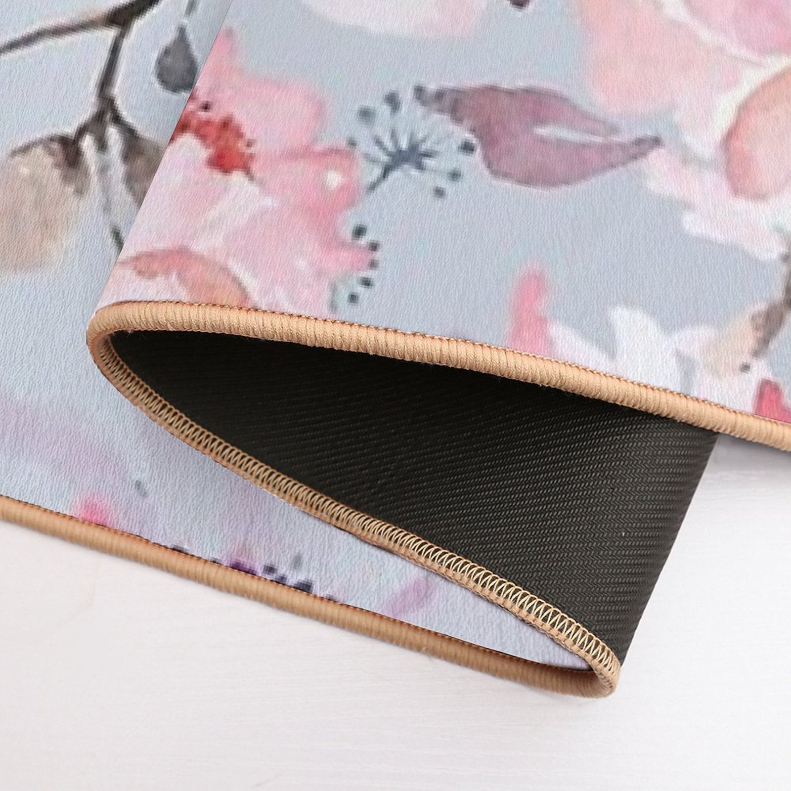 - Non-slip rubber backing grips floors securely, ideal for Rose Watercolor Pattern Mat placements on tiles, wood, or marble.