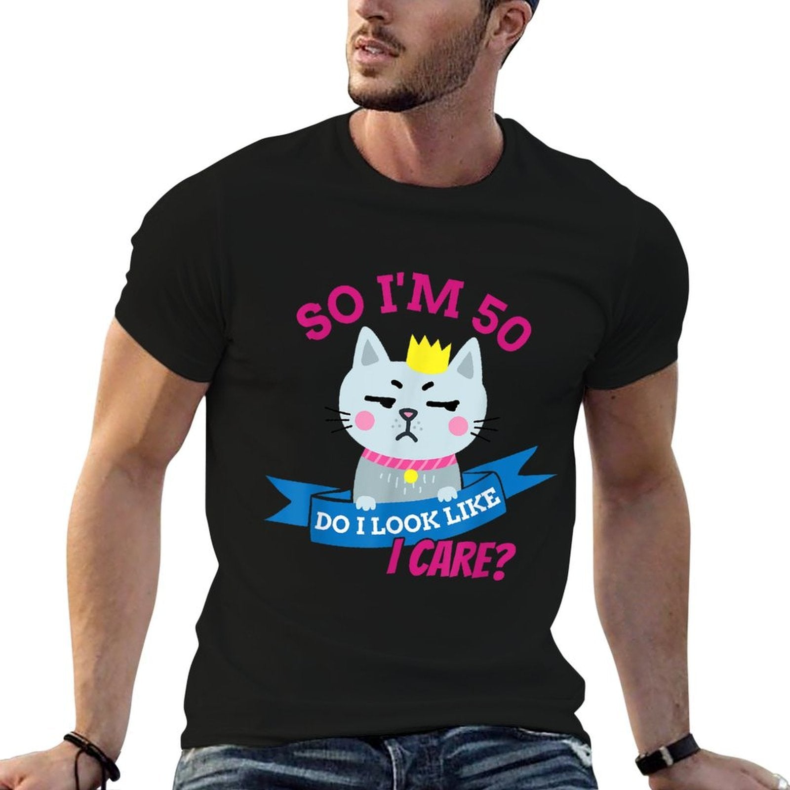 - Avoid bleach to preserve the So I'm 50 Do I Look Like I Care Funny 50th Birthday T-shirt’s bold graphics and cotton integrity.