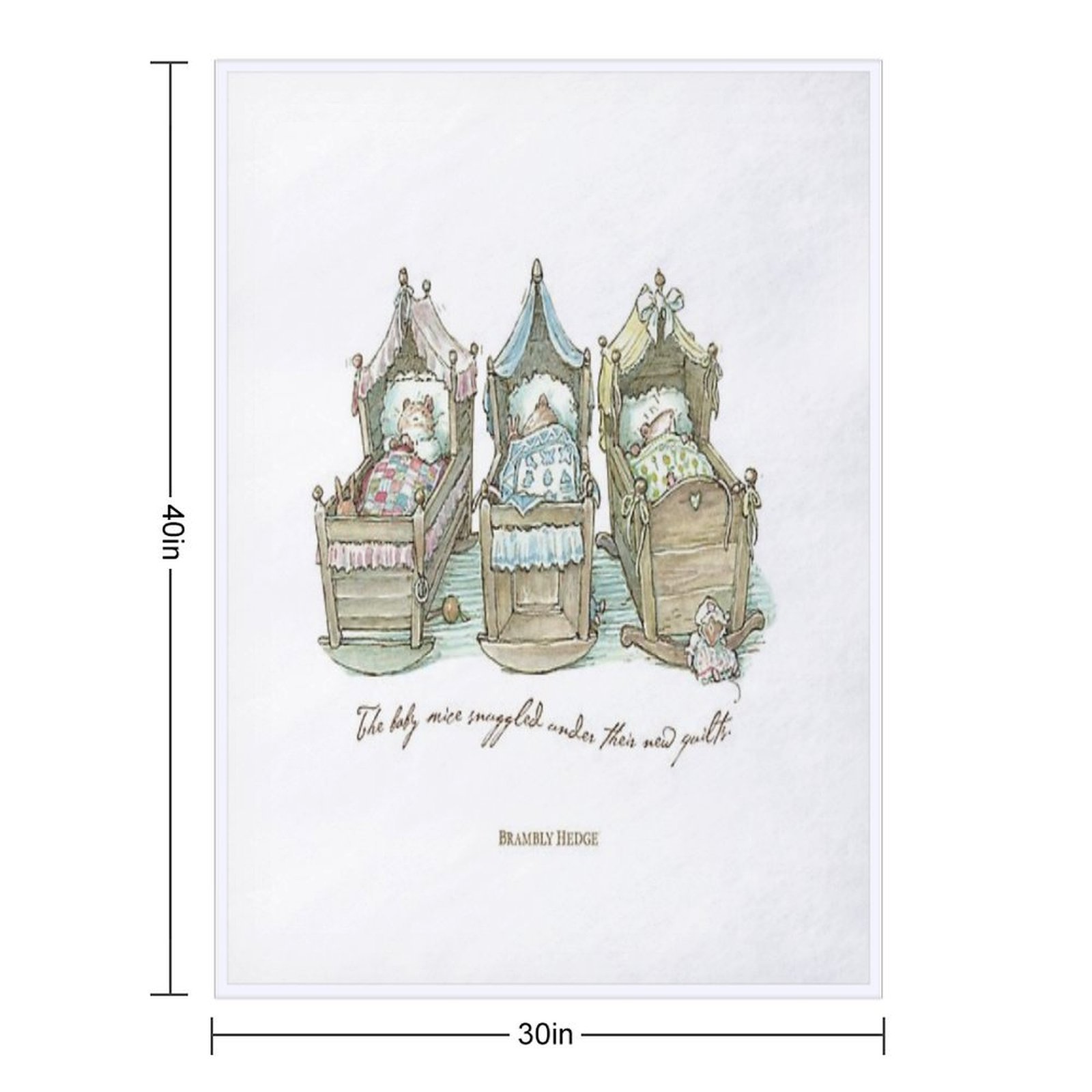 The Brambly Hedge Baby Mice Snuggle in Their Cots Blanket Size Chart: