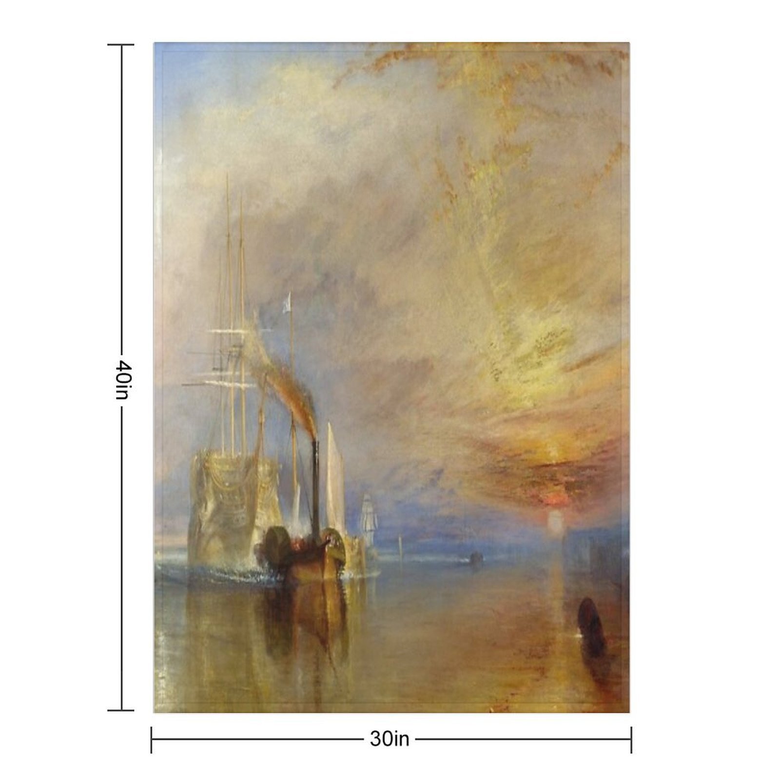 The Fighting Temeraire by J. M. W. Turner Blanket Size Chart: