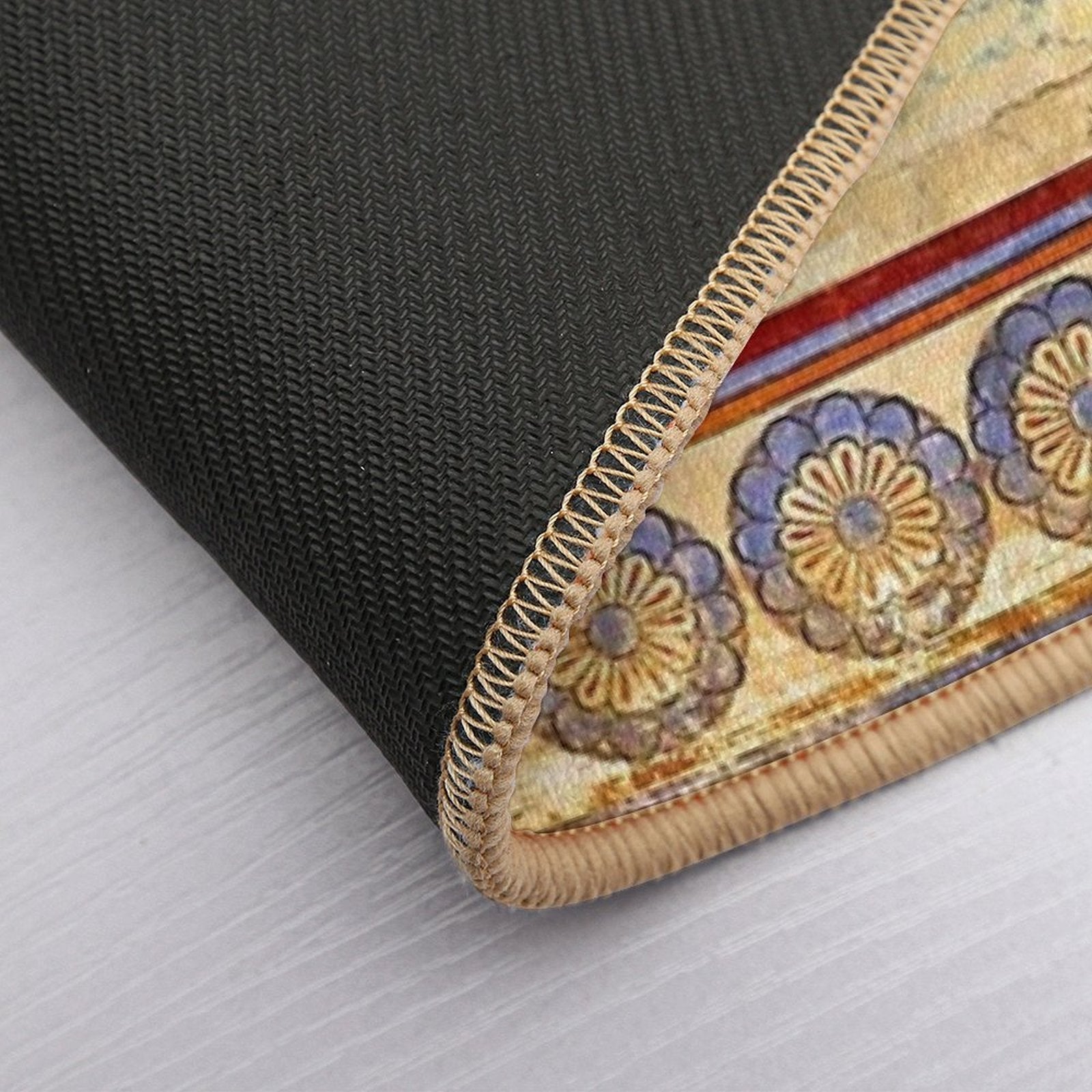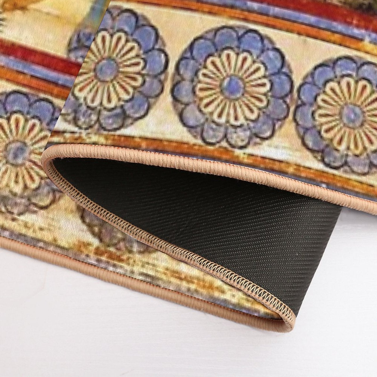 - Non-slip rubber backing grips floors securely, ideal for The Minoan Dolphins Mat placements on tiles, wood, or marble.