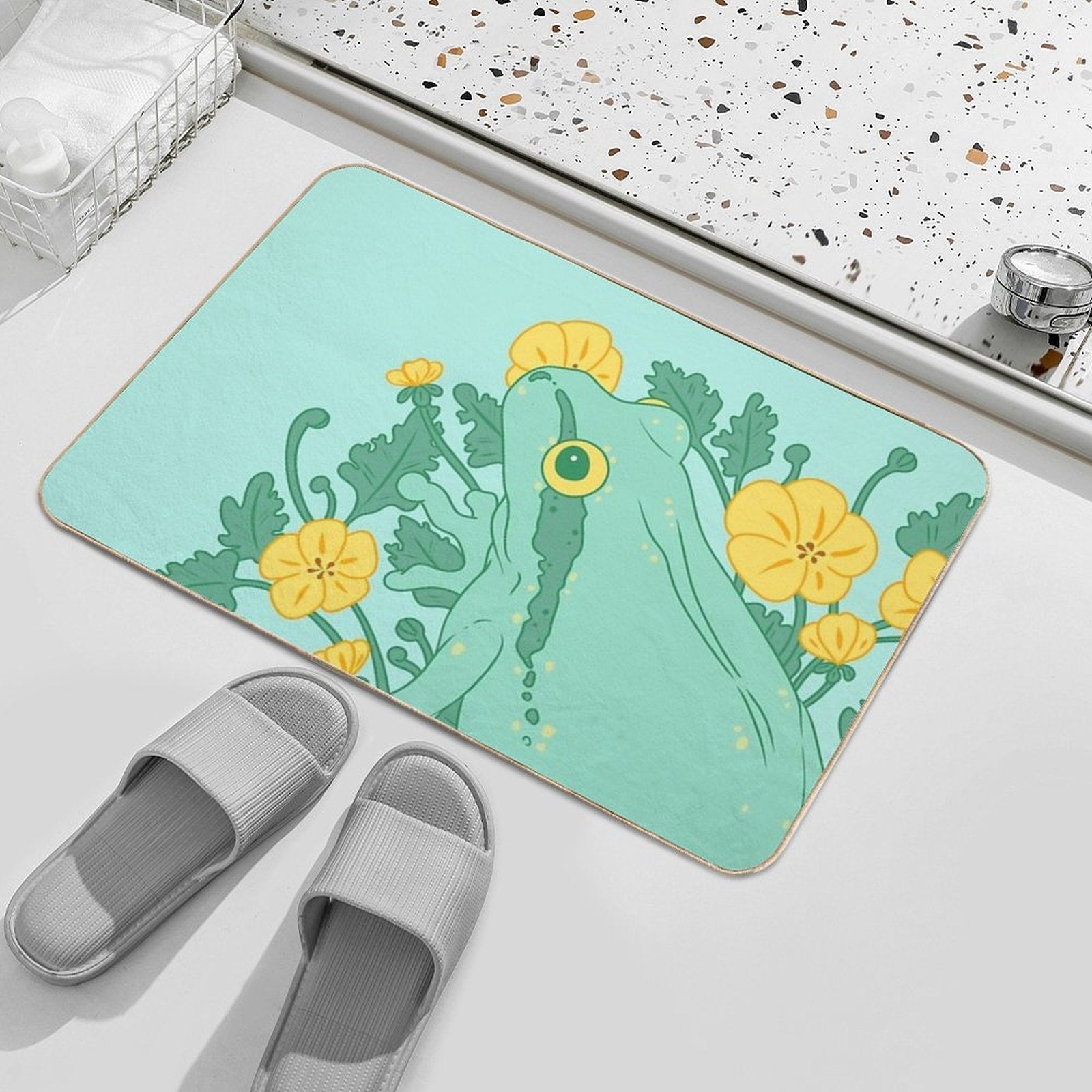 - Use as a vanity rug, guest suite accent, or mudroom defender – the Toe of Frog Buttercups Mat adapts to any space.