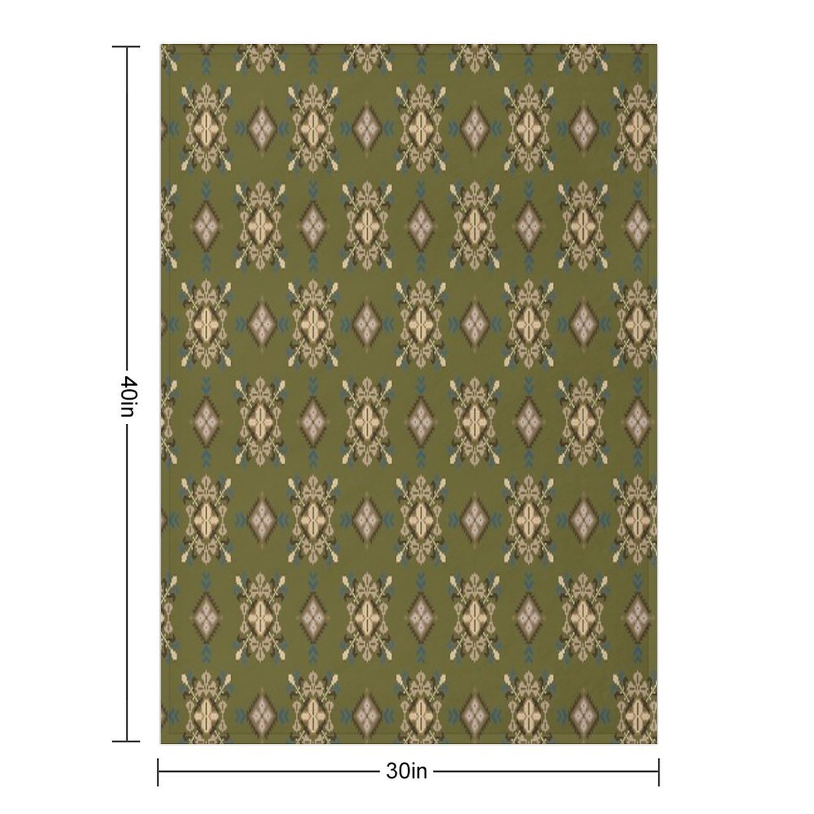 Traditional Ethnic Textile Pattern in Green And Brown Blanket Size Chart: