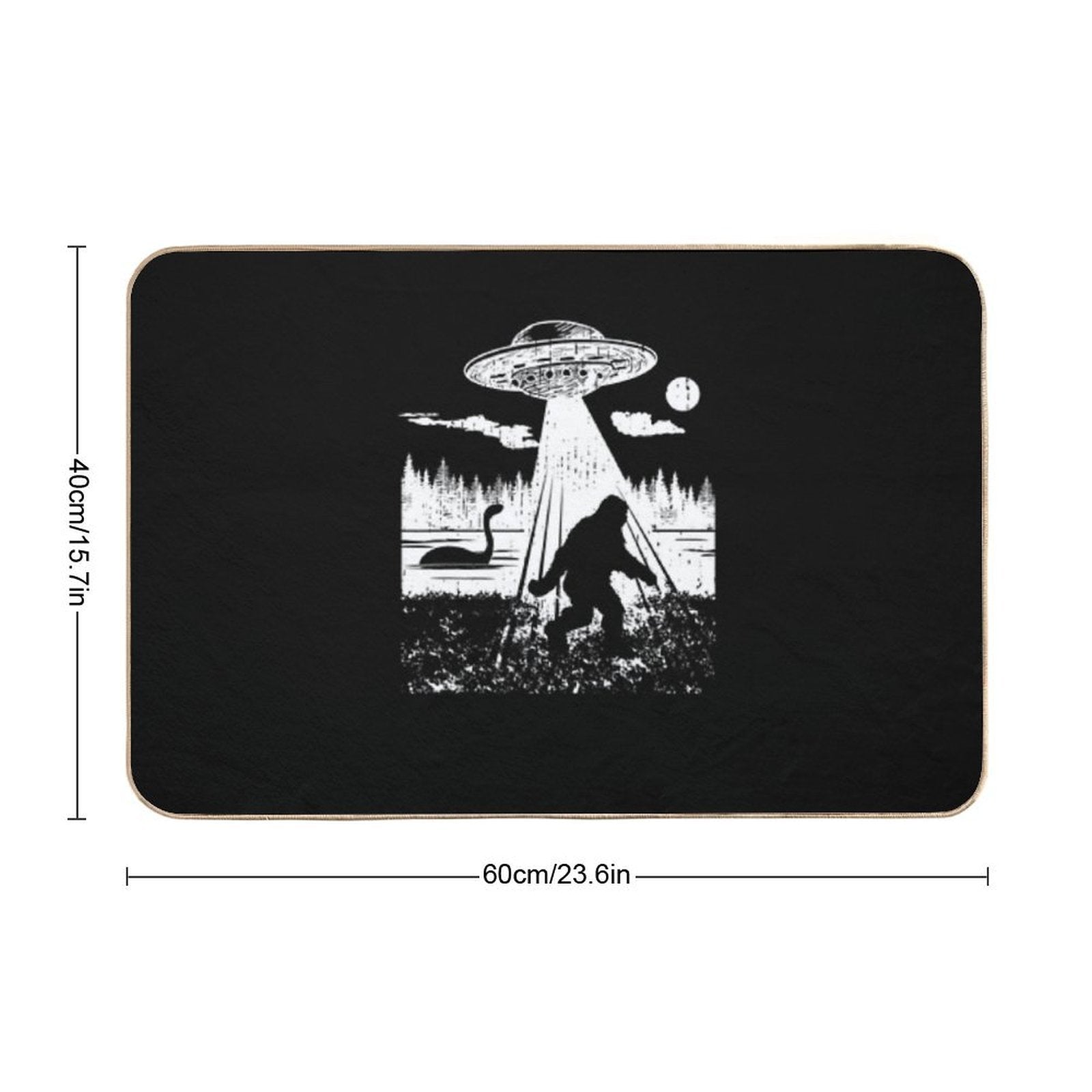 - Non-slip rubber backing grips floors securely, ideal for Trend Bigfoot Ufo Abduction Sasquatch Aliens Cryptozoology Mat placements on tiles, wood, or marble.